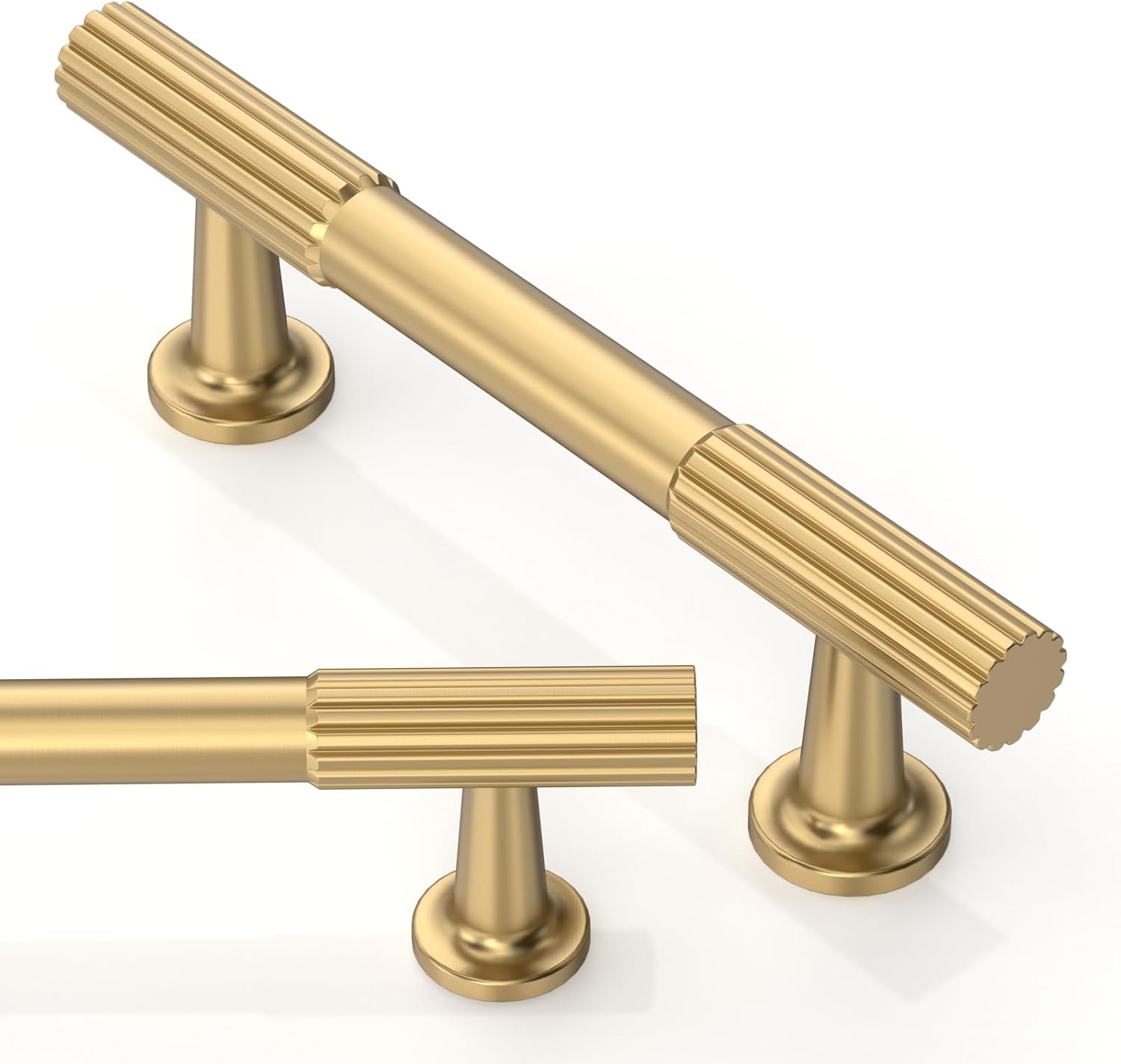 Asimerdeco 10 Pack Brushed Gold Cabinet Pulls 4 Inch(102mm) Kitchen Cabinet Handles Solid Zinc Alloy Cabinet Hardware Drawer Pulls