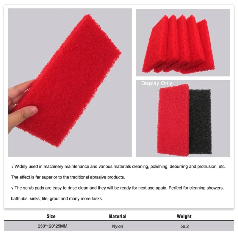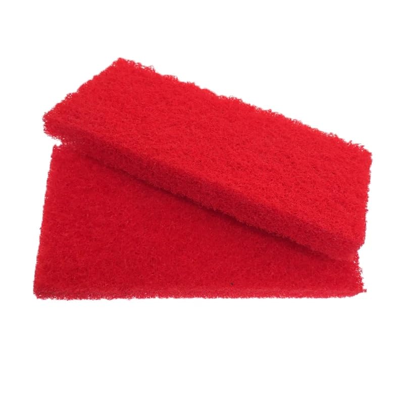 About this itemMULTIPURPOSE SCRUBBER HEADSCleaning floors/ Scrubbing a pool surfaceDURABLE + WASHABLELong lasting mopping heads. Finish the job, rinse them off + use them on the next projectMEDIUM ABRASIONNeed some extra oomph? Red scouring pads have just a little extra toughness for stubborn grimIncluded:10 pcs red scouring pad