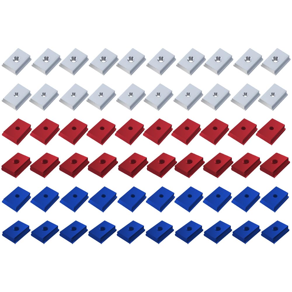Feature: SLIDE NUT The slide nut of the guide rail has a specially designed sliding structure, which allows the nut to move smoothly and adjust the position in the T-groove, and can realize quick positioning without frequent disassembly, which greatly improves the efficiency and flexibility of assembly, and is suitable for assembly requirements that require frequent adjustments or precise positioning. EASY TO INSTALL T Rail Threaded sliding nuts adopt a simple design, and the installation process is quick and simple, which can be easily done by hand or with simple tools. At the same time, maintenance frequency is reduced and long-term operating costs are reduced. Widely Used :Slot nuts are widely used in industrial automation, precision instruments, communication equipment, aerospace, rail transportation, building installation and many other fields, becoming a key component for connecting and fixing components, which greatly contribute to the reliability of the product and improve overall performance. Specification: Name: T-Guide slot nuts. Material: aluminium alloy. Colour: silver, red, blue. Thread: M6, M8. Size: as shown in the picture. Package includes: 10 x T-track sliders.