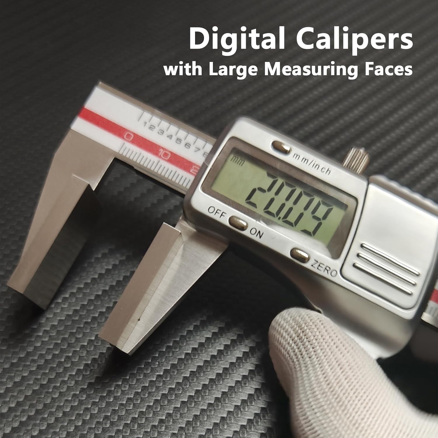 Whether you're working in a mechanical shop or a craft workspace, these Digital Calipers with Large Measuring Faces are built for jobs where standard calipers fall short. The oversized measuring faces provide better surface contact for soft or uneven materials such as sponge, foam, rubber, or braided wire rope, ensuring more accurate and consistent readings.Crafted from stainless steel, the frame is strong, corrosion-resistant, and ready for tough working conditions. The digital display is easy to read and offers a high resolution of 0.01mm / 0.0005 inch, making it ideal for engineers, technicians, and hobbyists alike. You can instantly switch between metric and imperial units, and use the ZERO function to reset at any position.This caliper also features automatic on/off, activating when you slide the scale and preserving energy when not in use. A practical and reliable tool for precise material thickness measurements in any setting.