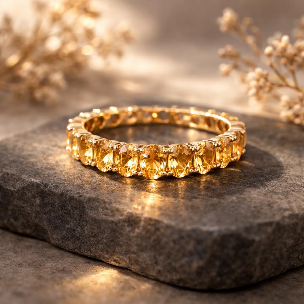 Celebrate everlasting love with this stunning 14K Yellow Gold Citrine Eternity Band. Designed with a continuous row of oval-cut citrine gemstones, this full eternity ring radiates warmth and brilliance from every angle. The vibrant golden hues symbolize joy, prosperity, and positive energy, making it a meaningful choice for life’s special milestones. Crafted in solid 14K yellow gold, the secure prong settings ensure durability while maintaining a refined and elegant silhouette. Whether worn as a wedding band, anniversary ring, stackable statement piece, or November birthstone jewelry, this eternity band delivers timeless sophistication. Elegant, radiant, and symbolic — a beautiful expression of love designed to shine forever.