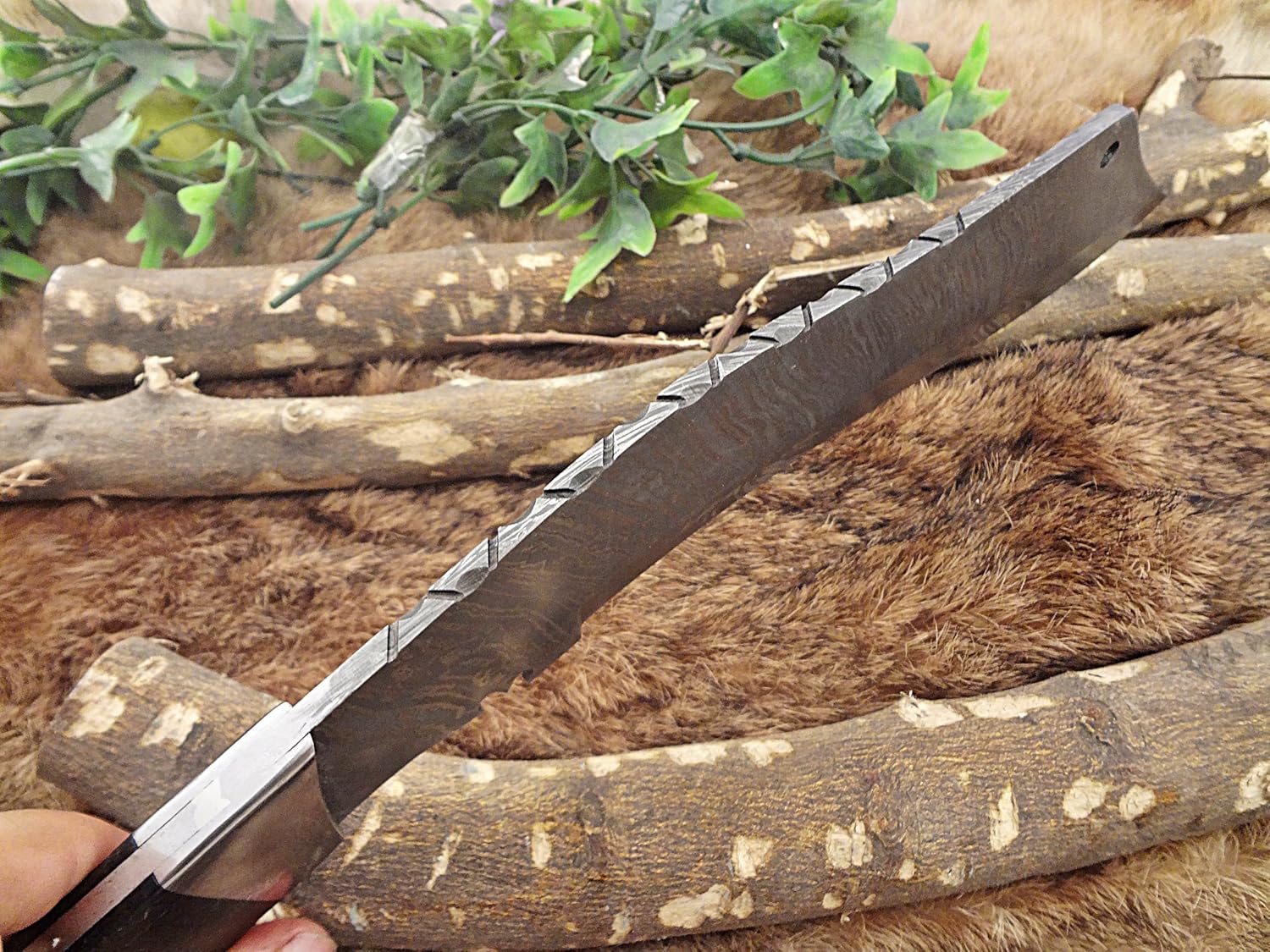 FEATURES: 15" Long hand forged Damascus steel Eagle Kukri Hunting Knife. 5" Long Natural Bull horn scale with Stainless Steel Bolster. 10" long Hand forged Damascus steel Twisted pattern full tang blade, Comes with extra thick Cow Hide Leather sheath. The sheath has belt inserting loop This Piece of Art Has a Nice Hand Forged With the Combination of 15N20 and 1095 Carbon Steel A Top Quality thick and robust leather sheath will be included with this product. The sheath can be worn on belt. .