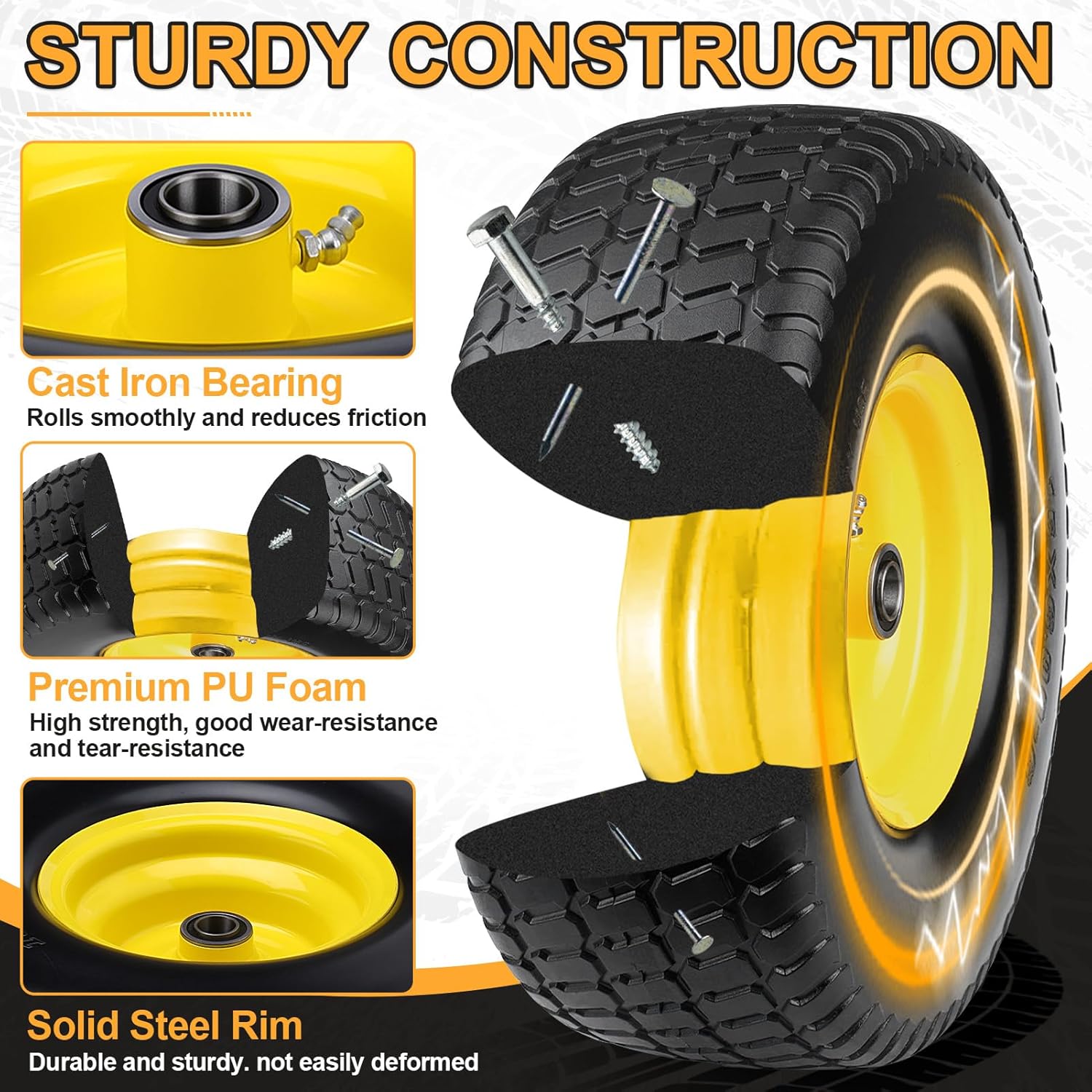 | Included Components | 12 X Metal gasket, 2 X Flat Free Lawn Mower Tire and Wheel, 4 X 1 Bushing, 4 X 5/8 Precision bearing |
