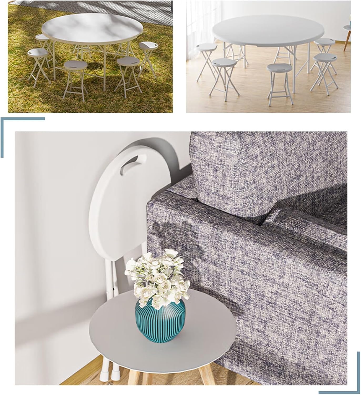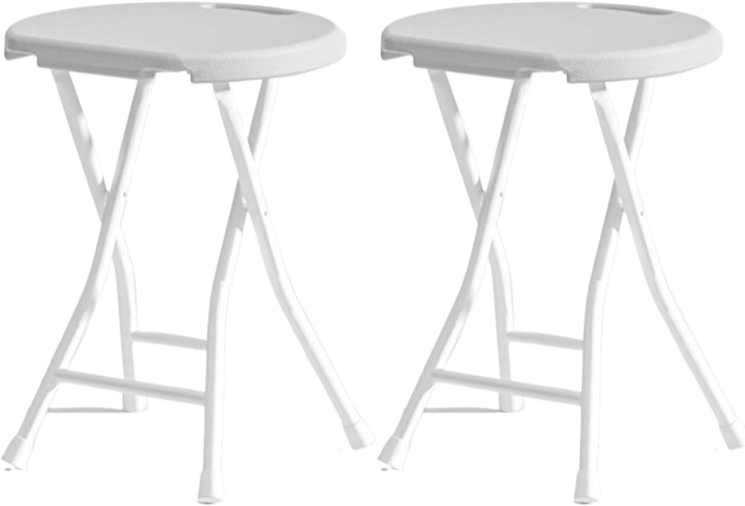 Foldable stools are designed with footrests for extra comfort and stability. Very suitable small space living. A great addition to your home office working on projects or enjoying snacks in the kitchen No assembly required, this compact lightweight stool folds unfolds easily any use storage Load capacity up 150kg/330lbs Material: plastic + metal frame color: White Seat surface diameter: 33x29cm/13x11.4in Height from seat floor 45cm/18inch Suitable 75cm/29.5inch high Open size: 33x29x45cm/13x11.4x18in Height after folding: 70cm/27.5in Packing list: Folding x1/x2/x4 Notice: Manual measurement, please allow slight errors size. Colors may vary slightly due different screen displays.
