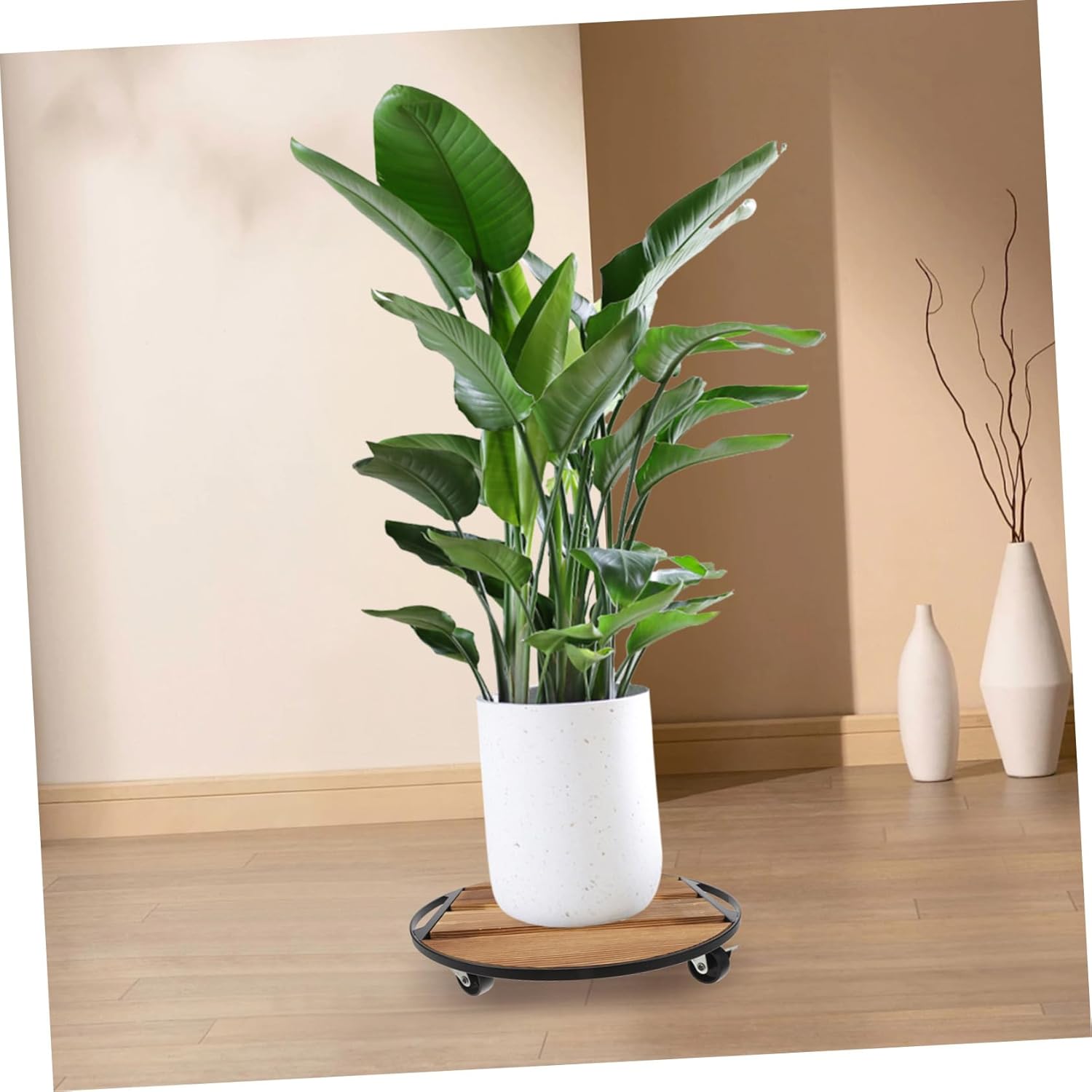 Package List 1 x flower pot base Features - Color: Coffee plant rollers with wheels -Material:Wood rolling plant stand -Wood: made from wood, this plant stand combines durability with a rustic charm that enhances any decor rolling stand -Multipurpose: suitable for both indoor and outdoor use, this plant tray is for patios, gardens, and indoor spaces wood plant stand -Strong support: the reinforced rolling base offers excellent weight capacity, making it ideal for heavy flower pots plant stand -Smooth rolling: the swivel wheels provide easy and smooth movement, allowing you to relocate plants effortlessly heavy duty plant stand -Practical use: this plant trolley adds convenience to your gardening routine, making it simple to move plants for plant stand with wheels - Size: 35.00X35.00X5.80cm/13.76X13.76X2.28in round plant moverGoods Informationrolling stand This mobile plant stand is crafted from wood and equipped with 360-degree rotating wheels, making it easy to move your plants around.potted plant mover for indoor and outdoor use, it helps you create a dynamic and flexible plant arrangement.wooden plant stands The round design offers stability, while the natural wood finish enhances the aesthetic appeal of your space