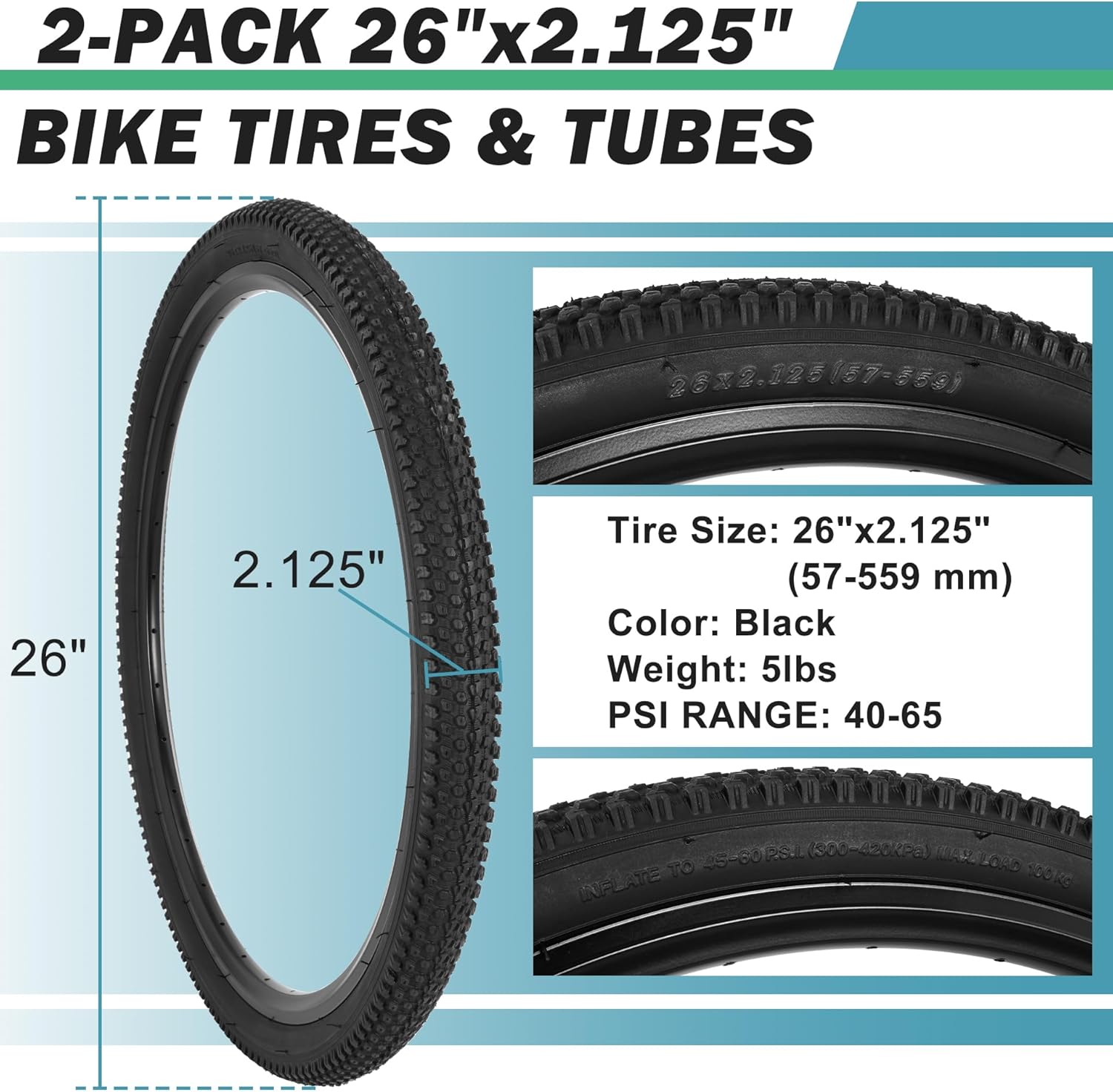 | Included Components | 2 bicycle tires, 2 inner tubes, 2 tire levers, 5 valve cores, 1 valve core wrench, 2 valve nozzle caps |