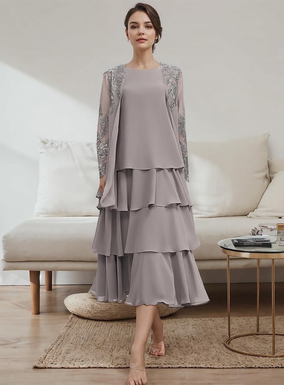 Welcome to Our Store! Welcome to Our Elegant Boutique! You'll discover an astonishing array of high-quality wedding dresses, formal gowns, evening wear, and special occasion attire designed exclusively for your unforgettable moments. Shop with peace of mind, as we are dedicated to providing exceptional service and unparalleled elegance. We are truly honored to serve you and bring your dream dress to life. 2025 Elegant A-Line Mother of the Bride Dress Boat Neck Tea Length Long Sleeves Cascading Ruffle Evening Dress Fabric: Chiffon Neckline: Boat Neck Silhouette: A-Line Back Design: Zipper How to choose size: Take your body measurements and match them with our size guide. For an even more tailored fit, please provide us with your detailed measurements as outlined: 1.Bust___inches or___cm 2.Waist___inches or___cm 3.Hips___inches or___cm 4.Hollow to floor ___inches or___cm 5.Height(without shoes)___inches or___cm 6.The date you need the dress:____ How to contact us: Around-the-Clock Assistance: We offer continuous online consultation services. Whenever you need help, feel free to reach out to us. We're here to support you.