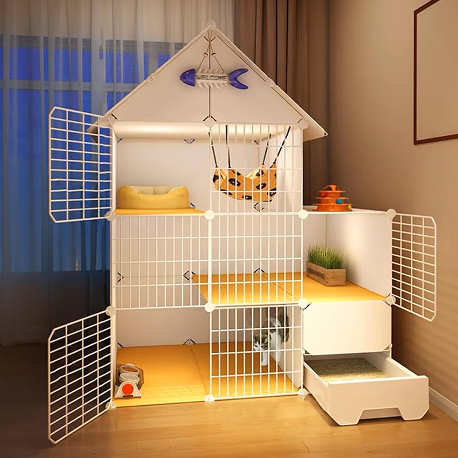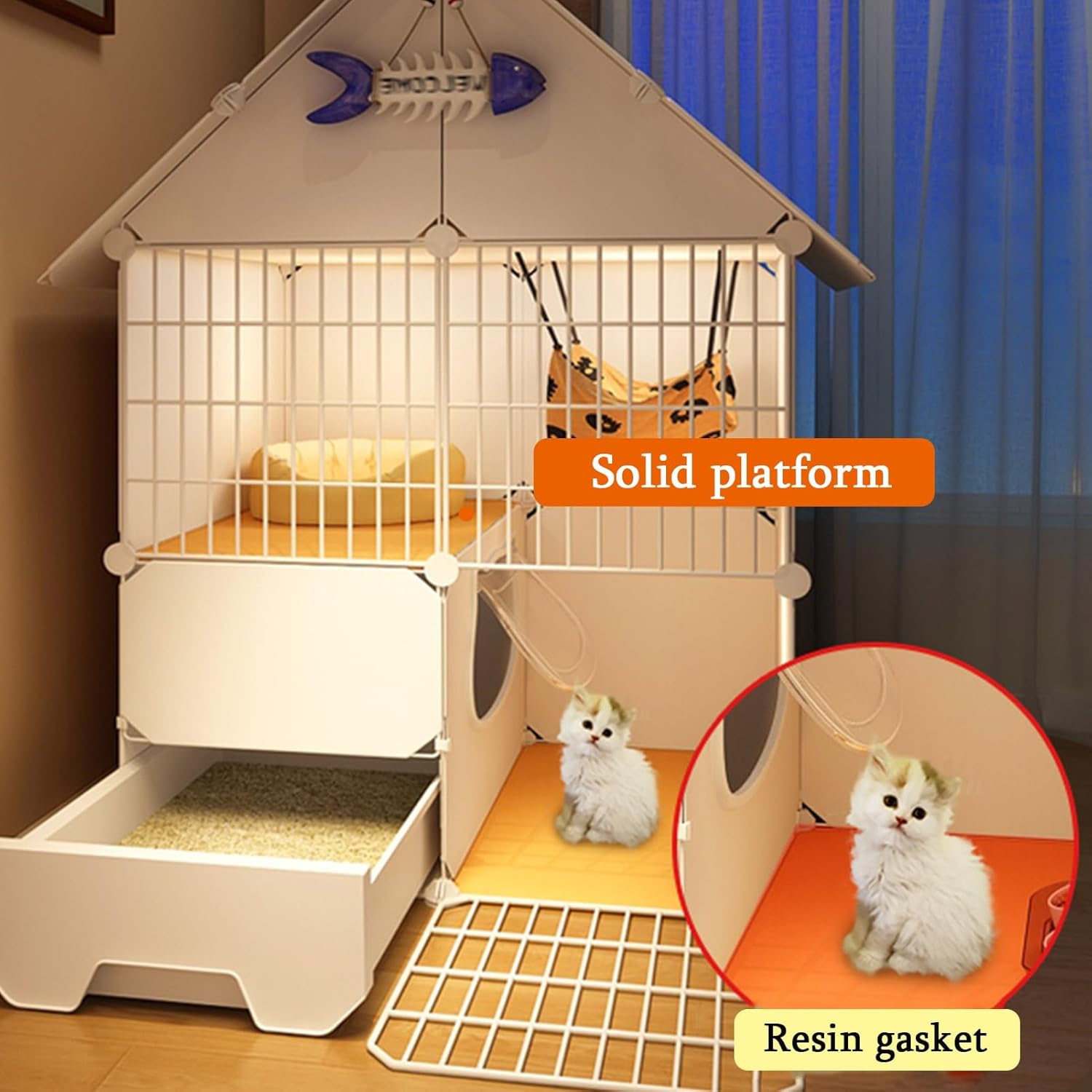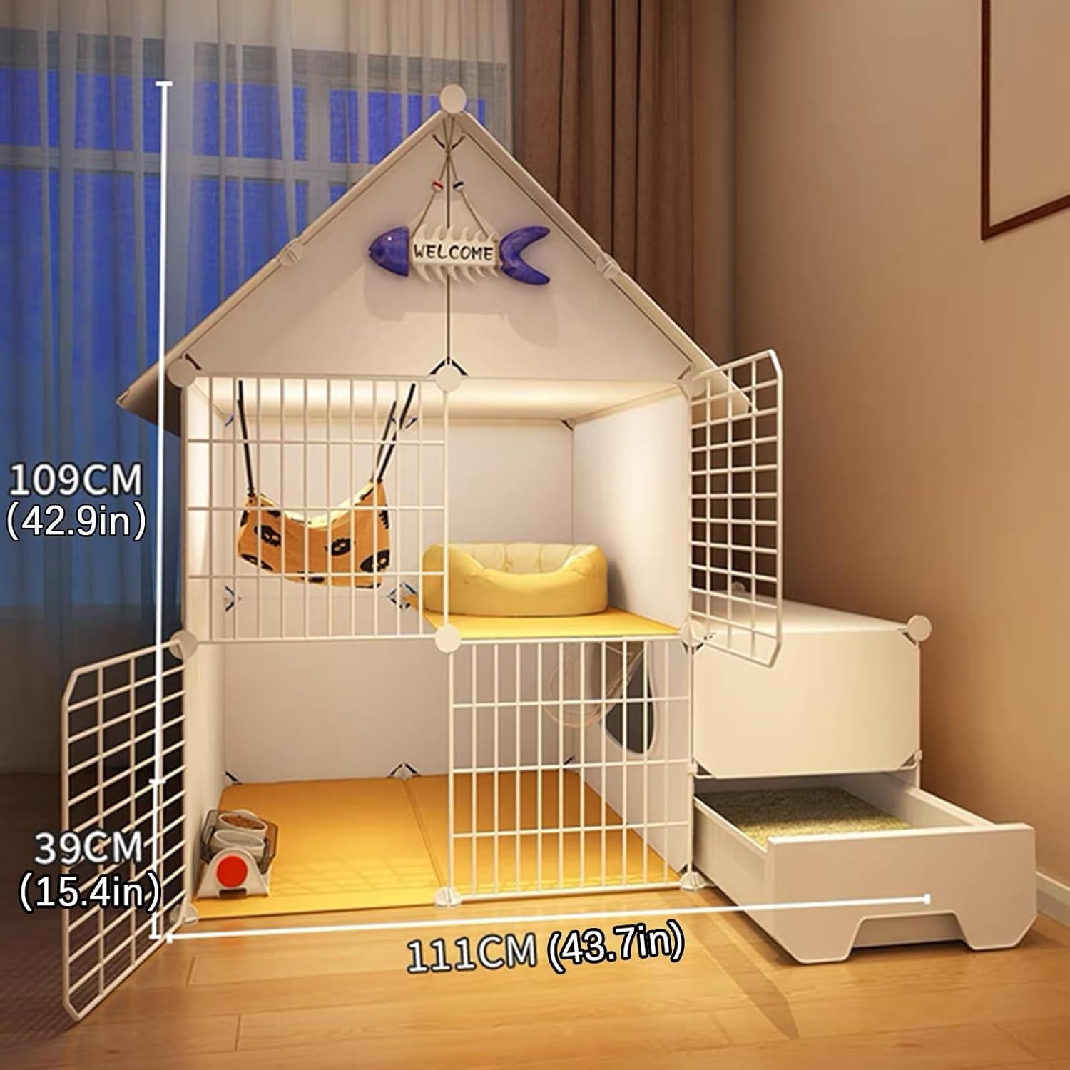 ✔GUAWJRZDP cat cage castle has a warm and beautiful shape, and the large internal space can be freely decorated to meet the cat's activity needs.✔It comes with a closed cat litter box, which effectively isolates odors. The cat litter box is separated from the living area and is clean and hygienic.✔The resin material is durable and has good performance. The iron mesh design is breathable and beautiful, and it is easy to observe the cat's dynamics.✔Encrypt the gap to prevent the cat from getting out, so you don't have to worry about the cat's safety even if the owner is not at home.✔The solid resin platform does not get stuck, and the cat lives comfortably.♥Product parametersProduct name: Cat cage with litter boxStyle: modern and simpleMaterial: resin + iron meshColor: whiteSize: 111x39x109cm (43.7x15.4x42.9in),111x39x142cm (43.7x15.4x55.9in),111x49x142cm (43.7x19.3x55.9in)Purpose: pet rest, sleep, playInstallation method: self-assembly☑Purchase instructions:①This product needs to be assembled by yourself.②Due to manual measurement, there will be a 1-3cm error in the product size.③Due to differences in display parameters, there may be differences in color, please refer to the actual product.