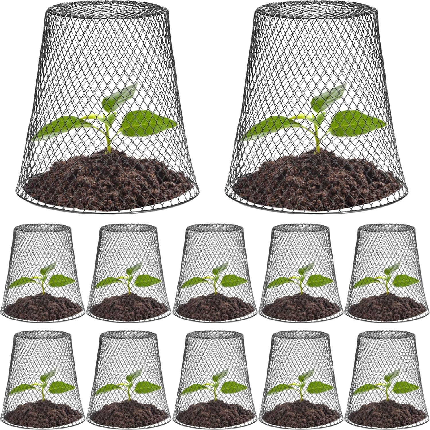 Mesh plant cage supports can keep your plants from animals and make your plants thrive, as well as regulate and beautify your garden to make your garden look neat and stylish. Material:Wire plant protector cages: vinyl coated wire; Color: black; Each wire plant protector cages: 9 x 9 x 5.9 inches Package includes: 12 Chicken Wire Cloche Plant Protector + 24 x Ground Stakes Notes: 1 Manual measurement, please allow slight errors on size. 2 The color may exist a slight difference due to different screen displays.