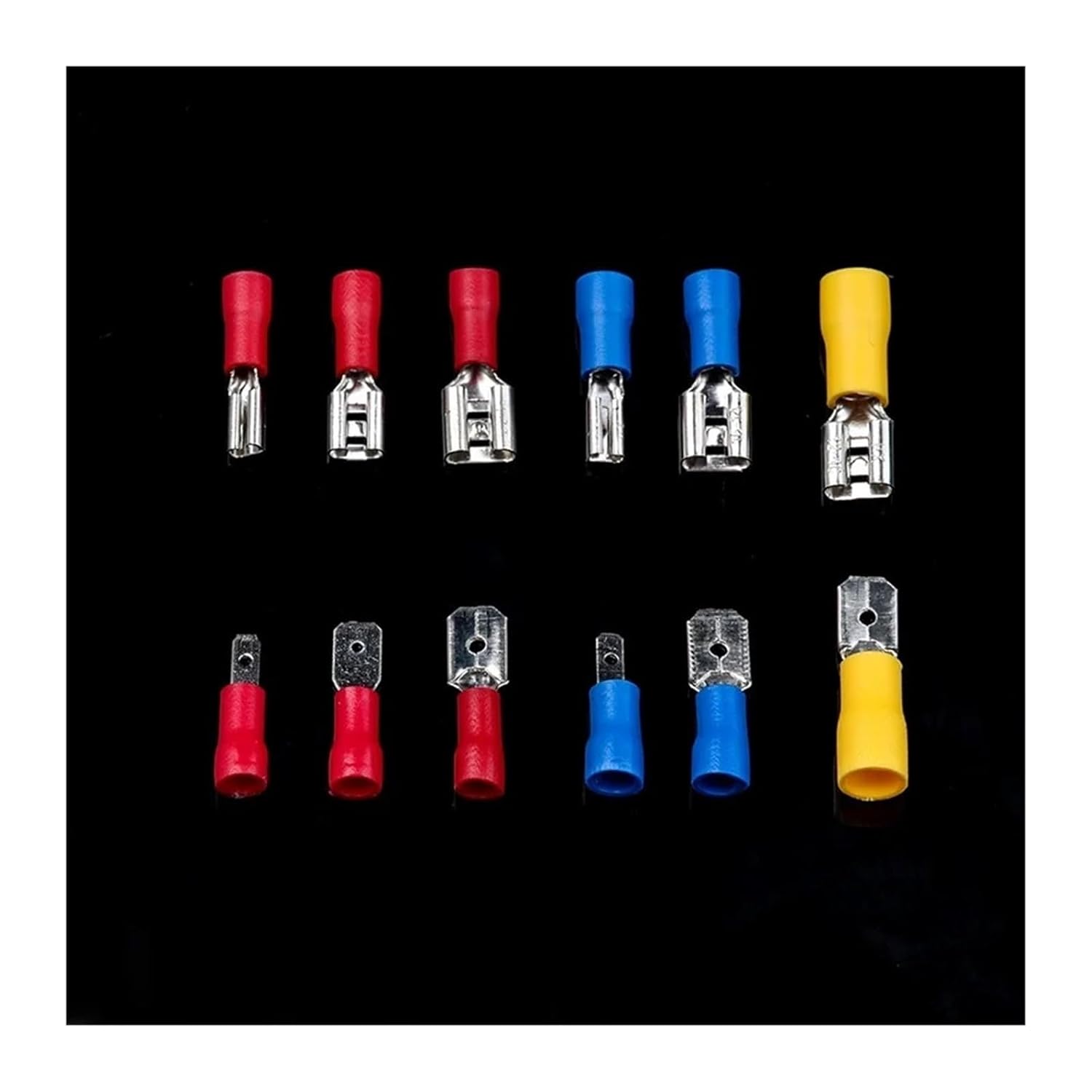 Specifications:* Color: As shown* Quantity:* Material: copper + PVC + tinplate* Red: Suitable for cable / wire sizes (0.5-1.5mm² 22-18 AWG)* Blue: Suitable for cable / wire sizes (1.5-2.5mm² 16-14 AWG)* Yellow: Suitable for cable / wire sizes (4.0-6.0 mm² 12-10 AWG)* Maximum current: red (10A), blue (15A), yellow (24A)