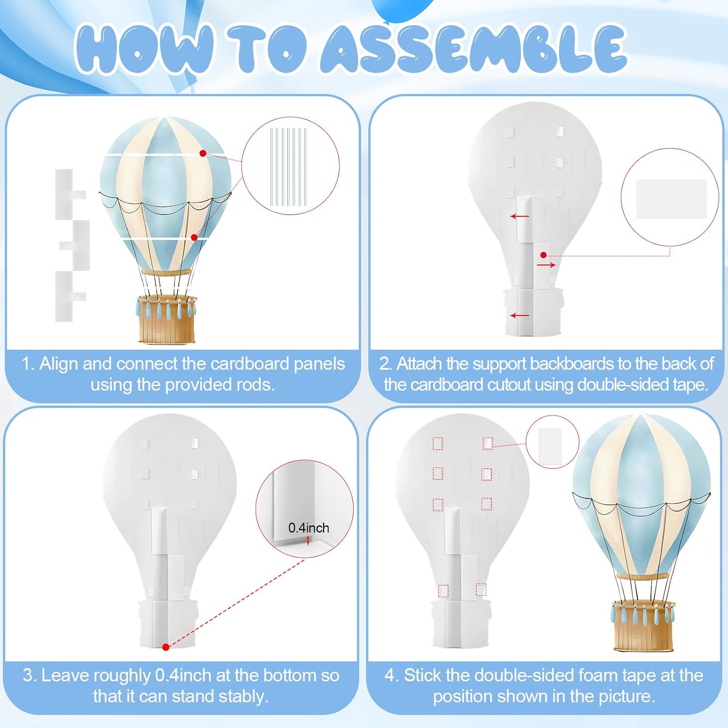 | Included Components | Hot air balloon cardboard cutout, 15 x sticks, 3 x support backboards |