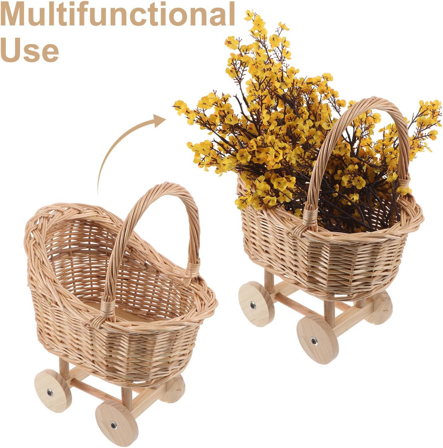 DescriptionThis decorative stroller carriage basket, crafted from quality natural rattan and wicker, is ideal as a centerpiece for weddings or baby shower basket decor. The mini stroller design can hold flowers, treats, or present, acting as a woven candy basket decor or a whimsical baby shower candy box for memorable party decorations.Features-Color:Light Brown-Material:wicker-Size:31.00X27.00X20.00cm/12.20X10.63X7.87in-Elegant Event Versatility: Use this rattan baby carriage doll stroller as a unique centerpiece for wedding or as a charming accent for baby shower basket decor, providing exceptional versatility across celebrations-Thoughtful present Basket: The hand woven basket is an ideal candy storage basket or present holder, beautifully suited as a baby shower candy box or party favor basket, filled with treats and memorable keepsakes-Craftsmanship: Each wicker wedding basket is skillfully handcrafted with materials, a wicker hand basket that delivers artistic detail and longterm durability for special occasions-Lightweight and Functional: Designed for effortless relocation, this mini wicker stroller decoration offers both strong construction and an easy carry handle, enhancing flexible event styling and utility-Chic Boho Accent: Its rattan flower girl basket design brings a warm, natural boho touch to weddings, showers, or home décor, fitting seamlessly into a variety of themes as a mini woven basket or floral display