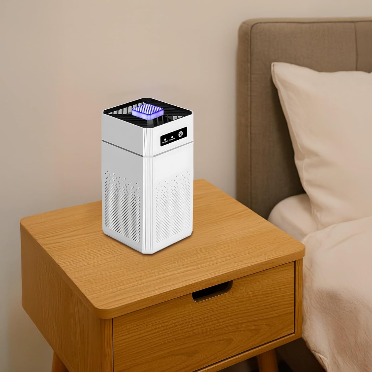Color: White Material: ABS Size: Air Purifier: Height 9.6 in / 24.5 cm,Front/Side 4.9 in / 12.5 cm Package Includes: 1 x Air Purifier,1 x Charging Cable Note: - Please refer to the measurement. Tiny measuring error is allowable in normal range. - There might be a little color difference due to the monitor, camera or other factors, please refer to the physical item.