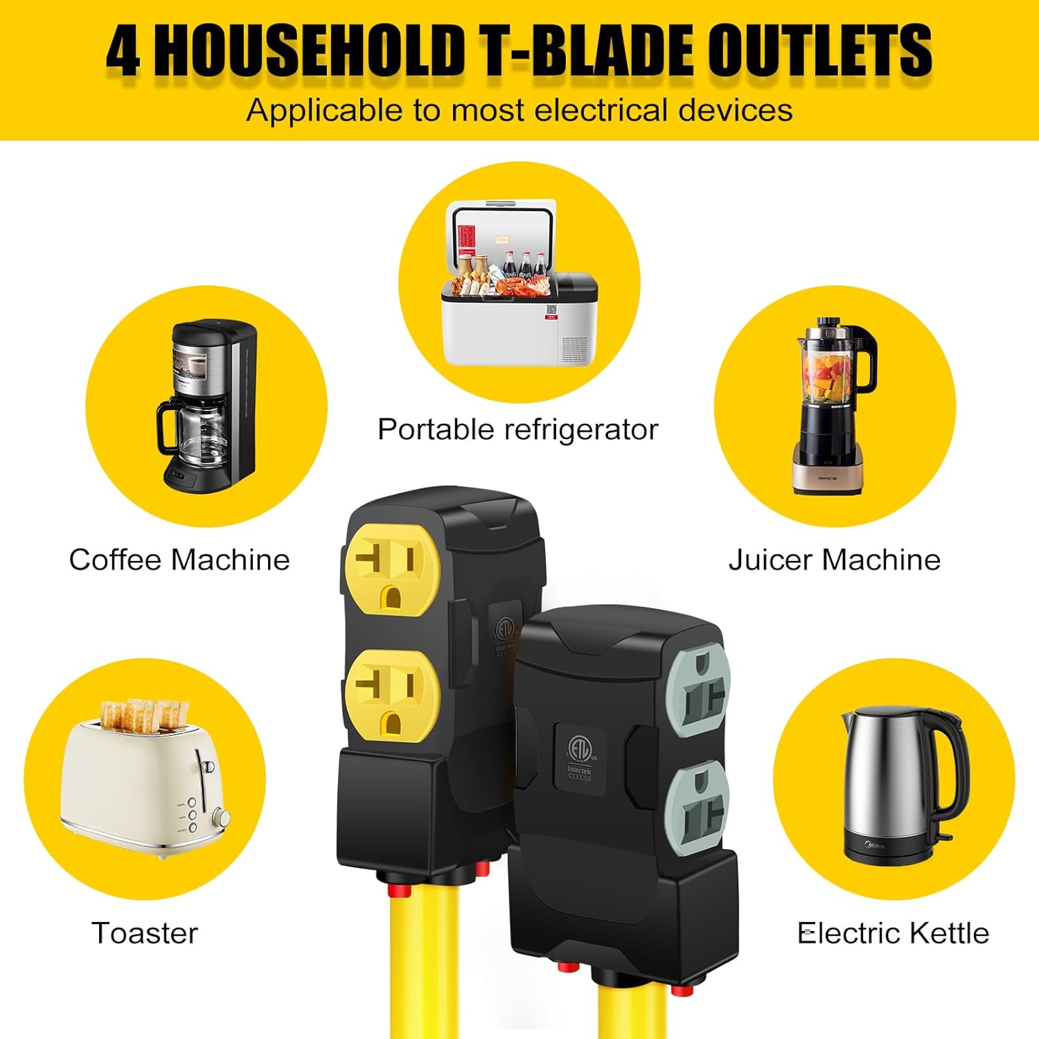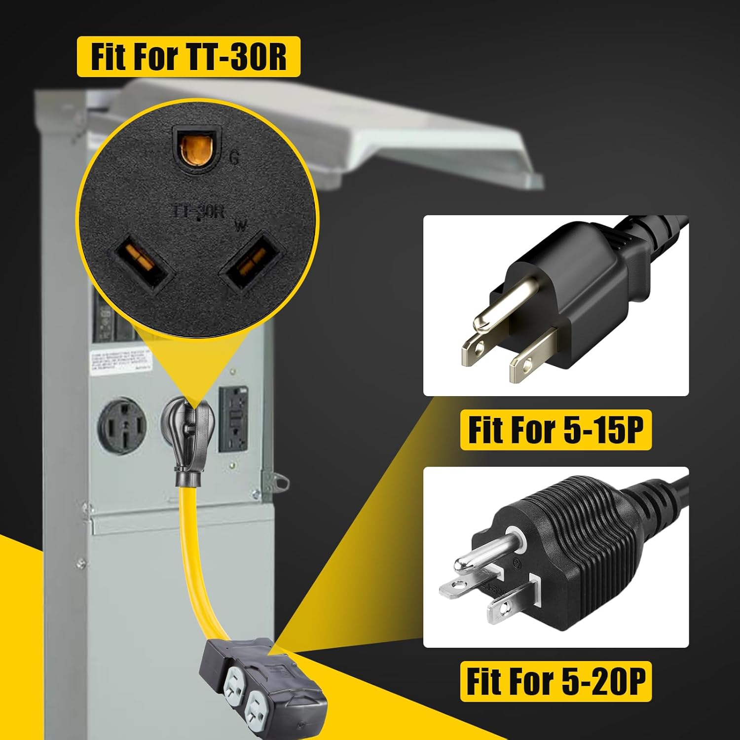 LAZMUMI 30 Amp to 20 Amp 110V RV Distribution Adapter, NEMA TT-30P to 4 X 5-20R/15R RV Generator Distribution Cord, Built-in Circuit Breaker, ETL Listed(