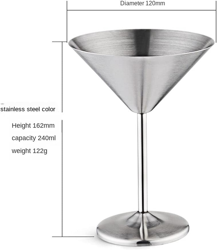 Made of stainless steel. The stainless steel construction makes lighter and more durable than glasses and crystal, to keep your drinks refreshingly cool. Ddurable and shatterproof, making these wine glass perfect for use in any indoor or outdoor environment. Stability: flat base stabilized to keep the wine glass on tables and counter-tops. These wine glasses are perfect for entertaining friends both indoors and outdoors. Perfect Gift: These stainless steel wine goblets are perfect for gift giving as they add a touch of modern elegance to any occasion. A stunning addition to any occasions, conjure up an impressive atmosphere in your office, living room, and home bar. Specifications: Name: Martini Cocktail Glass Material: 304 Stainless Steel Color: Sanding Copper Plating SIZE: Height 16cm, Caliber 12cm, Bottom Diameter 7.8cm Weight: 122g Package Included: 1 x Martini Cocktail Glass 1. Only sell main products, not other products. 2. Since manual measurement is required, please leave a space of 1-3 cm. 3. Due to screen differences, the color may be slightly different from your expected color, please allow. Remind: After receiving the packaging, please check the packaging and the product carefully. If the received item is defective or has any questions, please contact us via email to resolve the problem. We will reply as soon as possible and do our best to meet your needs! Due to screen differences, the color may be slightly different from your expected color, please allow.
