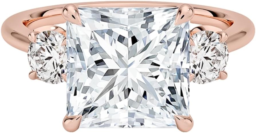 4 CT Moissanite Engagement Ring Petal Three Stone 925 Sterling Silver, 10K 14K 18K Solid Gold (ROSE, WHITE, YELLOW) Unique Wedding Ring 4 Carat Diamond Ring Anniversary Gift Promise Ring, this handmade EVERIA JEWELS engagement ring is a unique and elegant choice for proposals. Description of Ring Production Method: This ring is entirely handcrafted, with the stone expertly cut and polished by our skilled artisans. Center Stone Details Shape: Asscher, Cushion, Emerald, Oval, Princess, Radiant, Round Briliant Cut Moissanite Size: 4 CT Color: D-E Clarity: VVS1-VVS2 Luster: Excellent Make: High Quality Side Stones Details Shape: Round Moissanite Size: 0.66 CT Color: D-E Clarity: VVS1-VVS2 Luster: Excellent Make: High Quality Metal Details Designed by EVERIA JEWELS Materials: Sterling silver, Rose gold, White gold, Yellow gold Metal: 925 Sterling Silver, 10K 14K 18K Solid Gold Metal Stemp: 925, 10K, 14K, 18K Setting: Four-Prong, Prong Set Band Width: 1.80 MM Ring size: Customize now This ring features Vintage Filigree Engagement Ring Antique-Inspired Pavé Diamond Ring Art Deco Filigree Bridal Ring Intricate Pavé Engagement Ring for Women