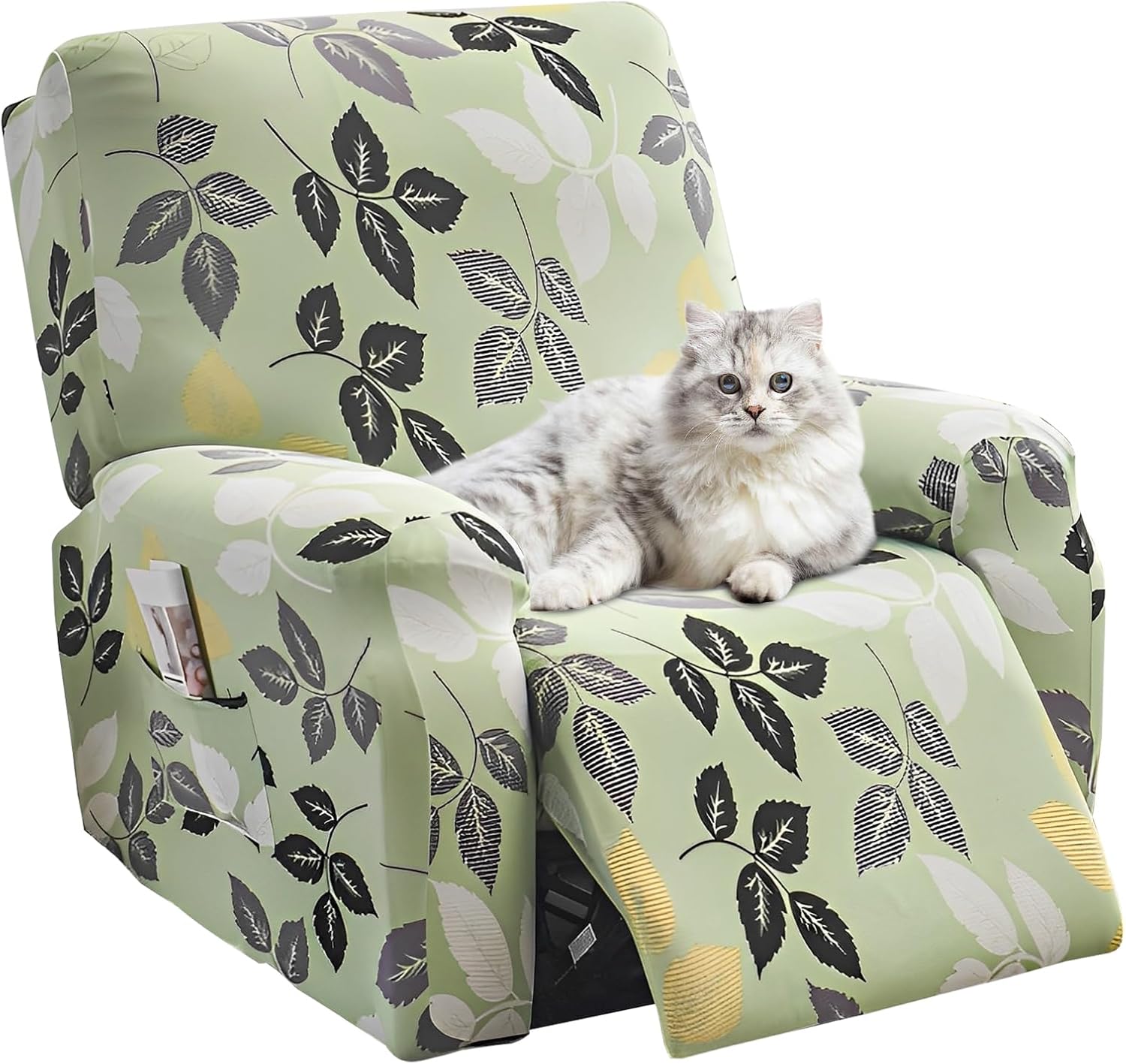 Parts List:One Set of 4-Piece Recliner Chair Covers (With Pockets On One Side Only)Product Specification:Description:Our 4-piece recliner slipcovers are made of 92% polyester + 8% spandex, soft; breathable and highly elastic to ensure a snug and comfortable fit, designed for 1-seater recliners for protection and comfortKey Feature:Comprehensive Protection: Elasticized back corners enhance anti-slip, full coverage design resists stains, abrasion and pet damage, suitable for families with children and petsEasy to Install: 4-piece design simplifies installation, elastic bottom and ring design is stable and won't shift, and the right arm has a side pocket for easy storage of small itemsSpecification:Product Name: Recliner Chair CoversMaterial: PolyesterSize: Rear for Width: 70-101cm/27.6-39.8inchFront Part Applies: 58-86cm/22.8-33.9inchThe left and right part is suitable for 66-91cm/26-35.8inchSuitable for Sofa Height: 76-102cm/29.9-40.2inchStyle: Style 1, Style 2, Style 3Note:1. There may be slight differences between the picture and the actual color of the commodity. We will try our best to show you the exact color.2. Please allow slight dimension difference due to manual measurement.