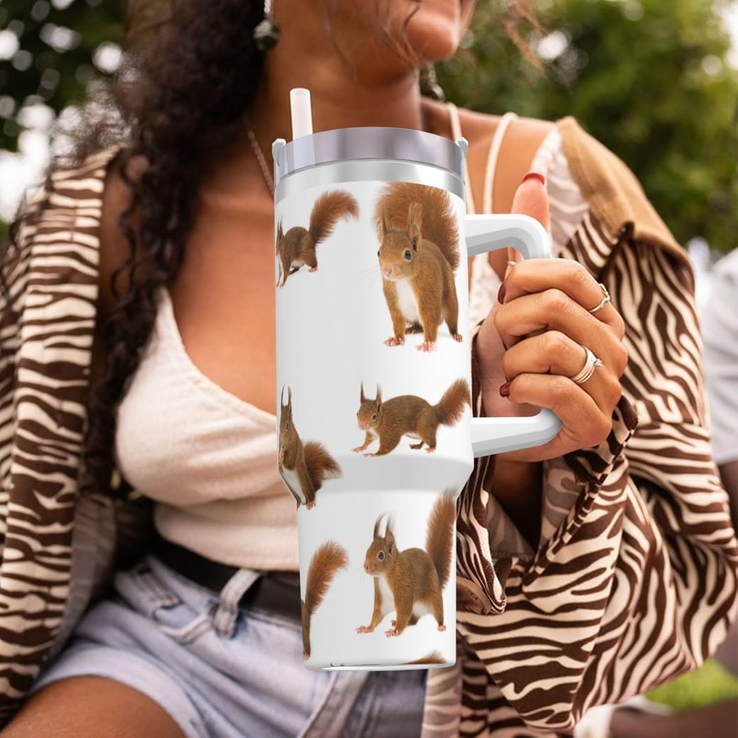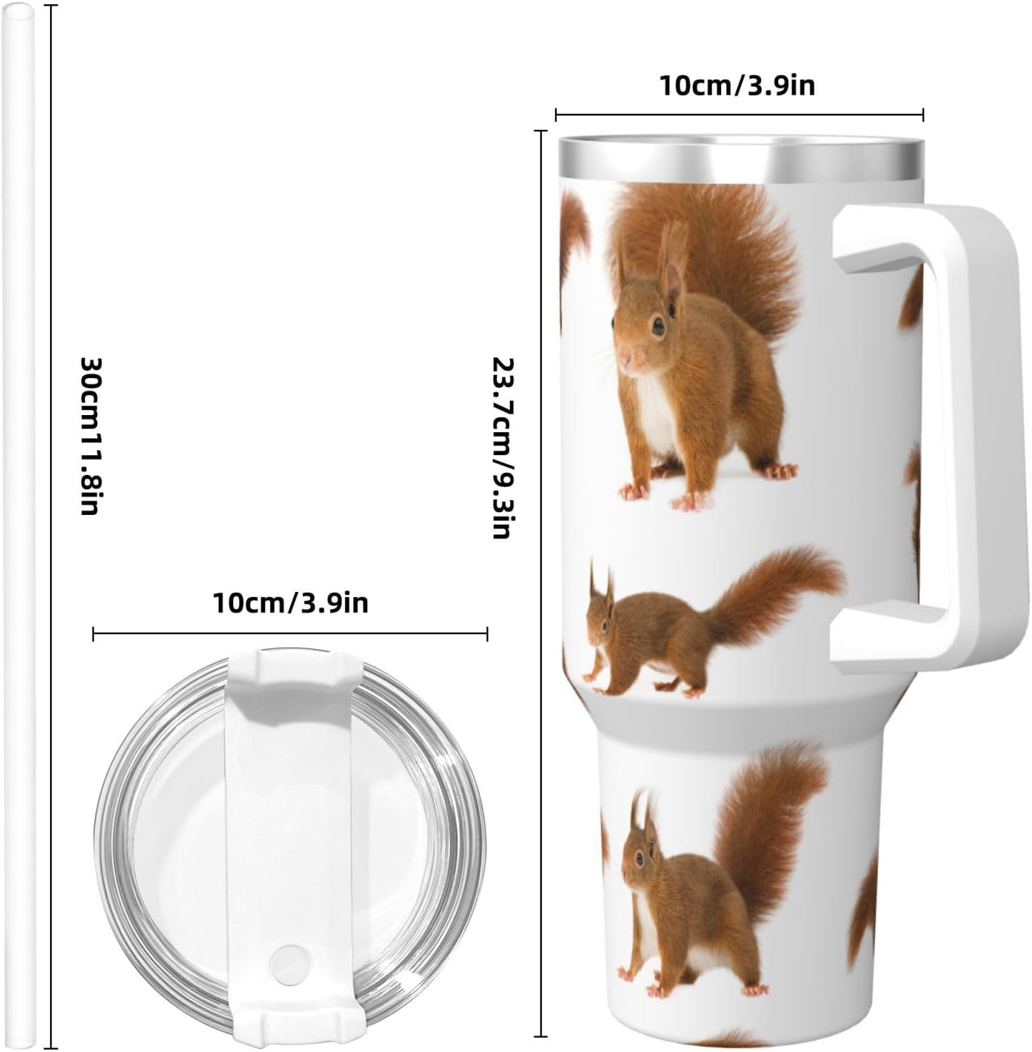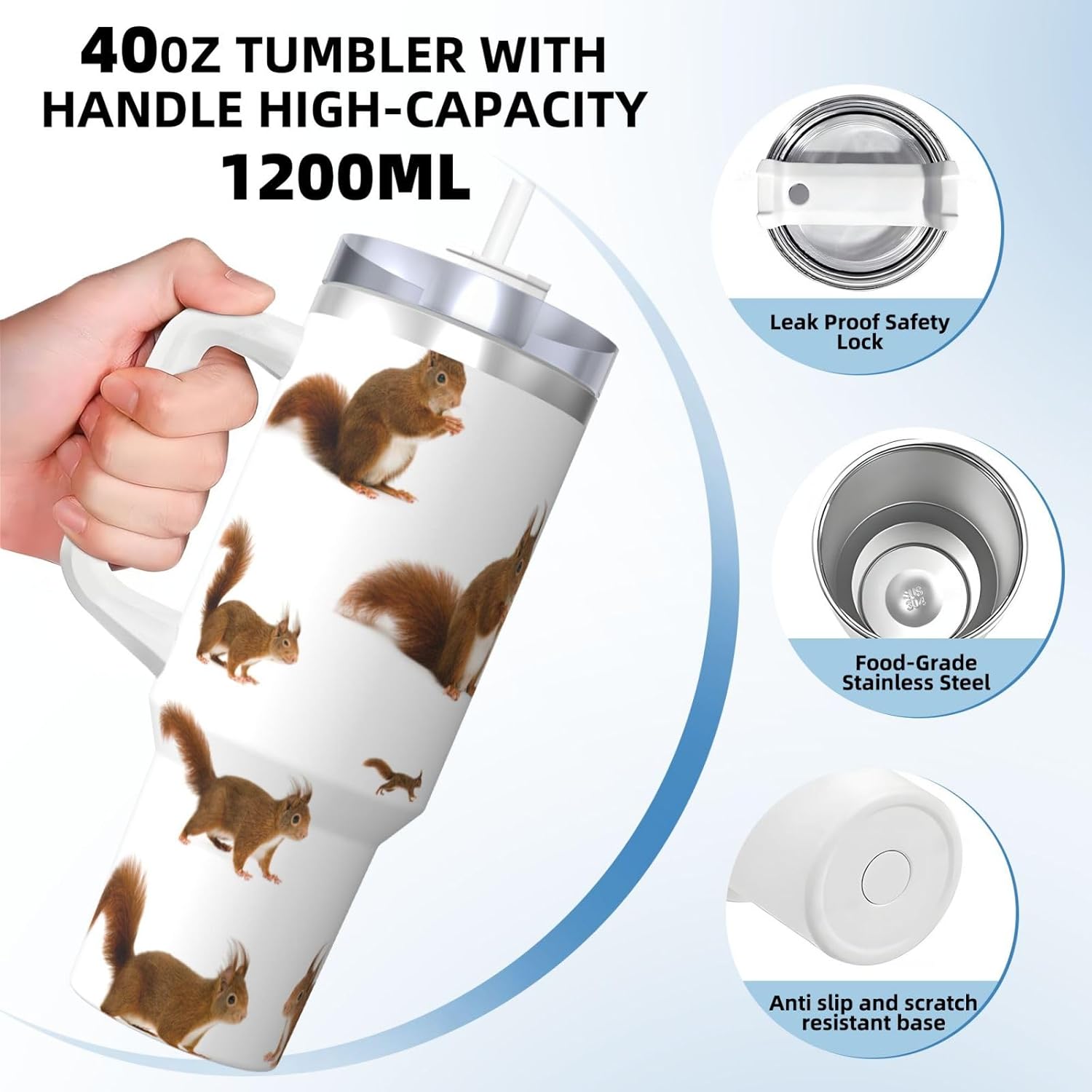 This Cute Squirrel Print Ice Bully Cup features a double layer stainless steel design that can be used for a long time without rusting. The lid has good sealing to prevent water from overflowing, and it is easy to unscrew for filling and cleaning. It can keep water, coffee, or drinks warm or cool for hours and is suitable for travel, camping, and driving.