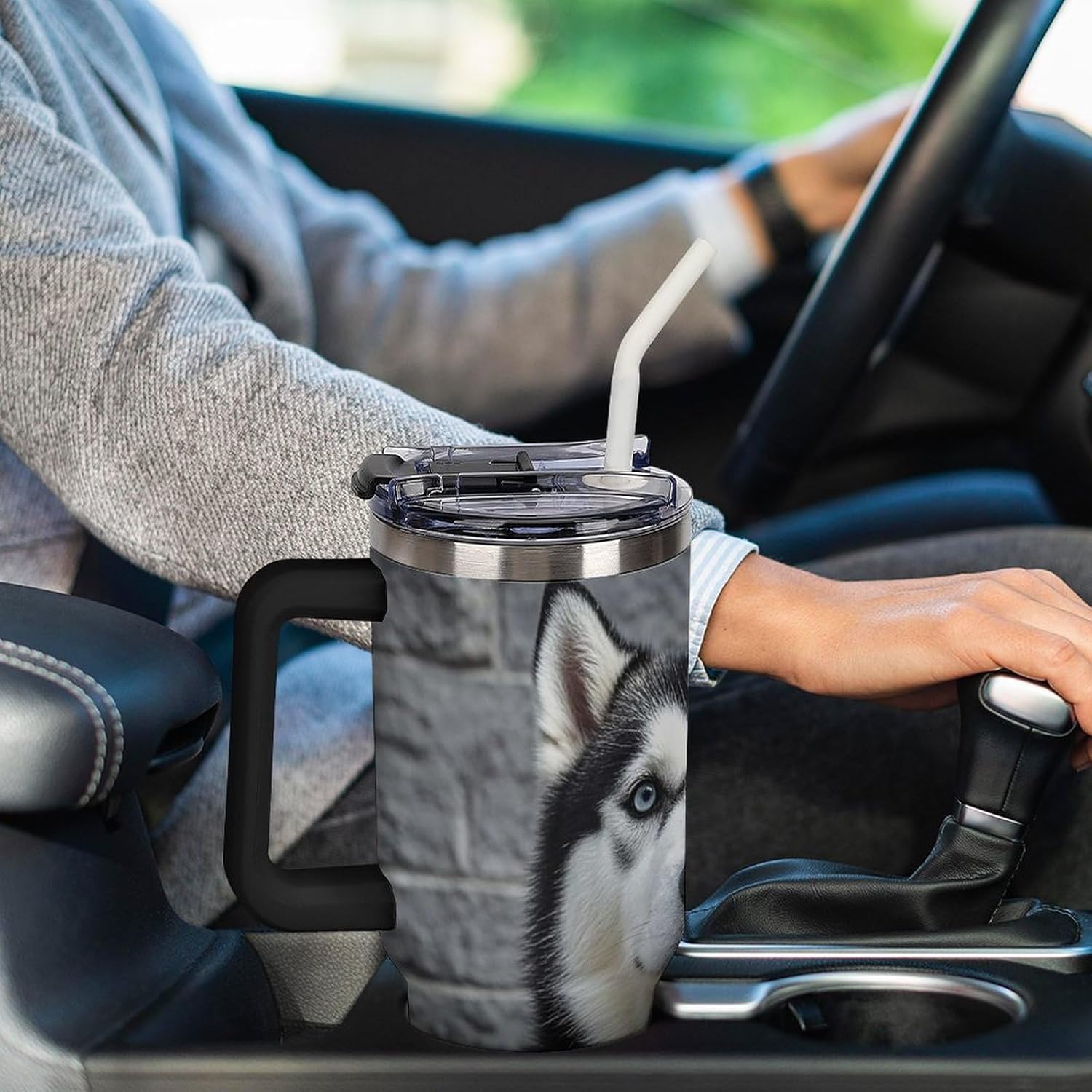 Are you still looking for a thermos that's just right for you?Consider our insulated coffee mug, made of high-quality 304 stainless steel. The interior is electropolished, preventing rust. Use it with peace of mind.This large-capacity insulated mug features a revolutionary T-shaped design, boasting a stylish and slim profile that easily fits into any standard car cup holder, significantly increasing its capacity. Enjoy your drinks anytime, anywhere without worrying about rehydration and reducing the frequency of refills.Our Husky Dog water bottles are suitable for a variety of occasions, such as parties, travel, gatherings, the beach, the office, and home. They also make wonderful gifts for family and women on holidays like Valentine's Day and Thanksgiving.