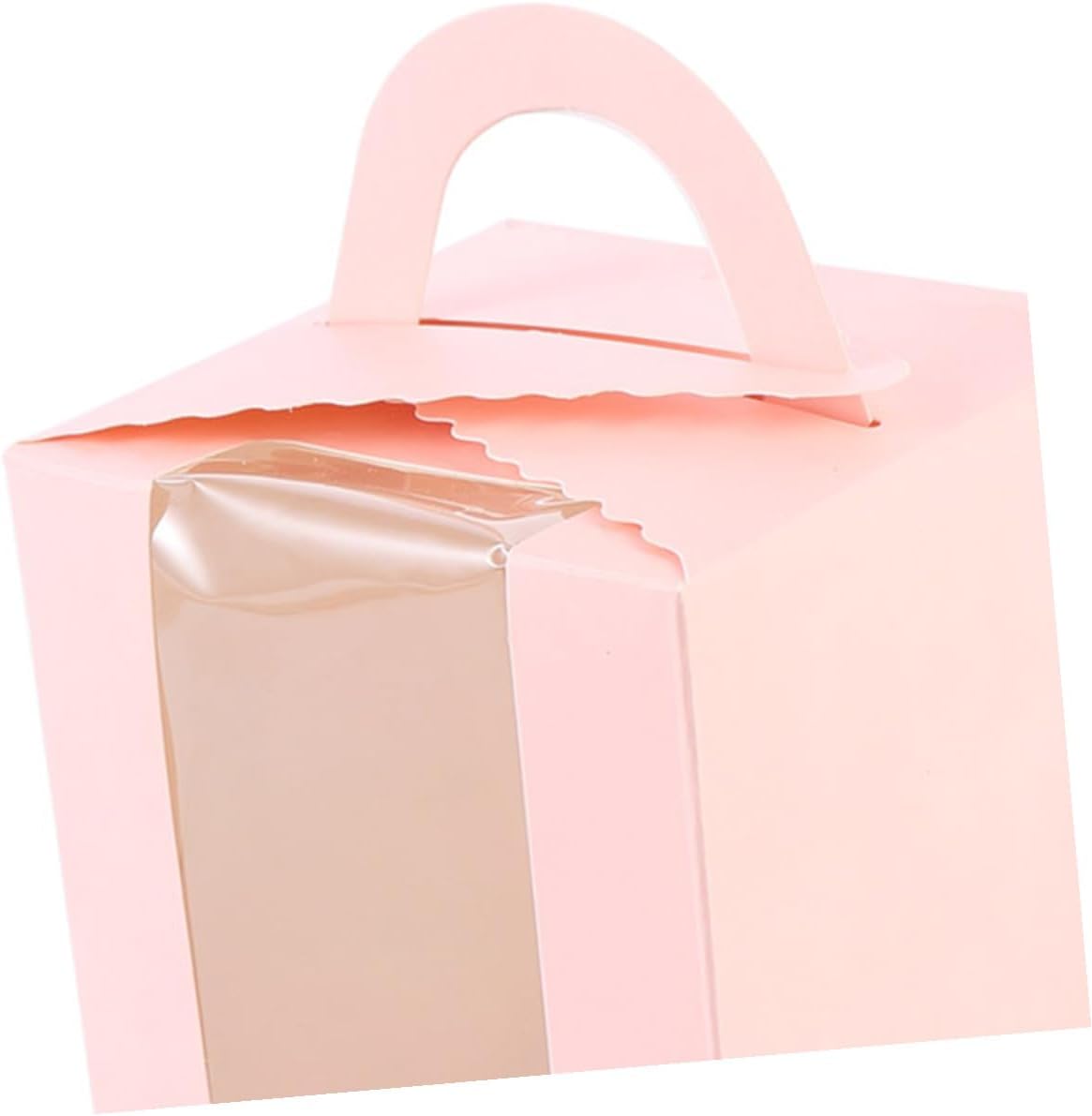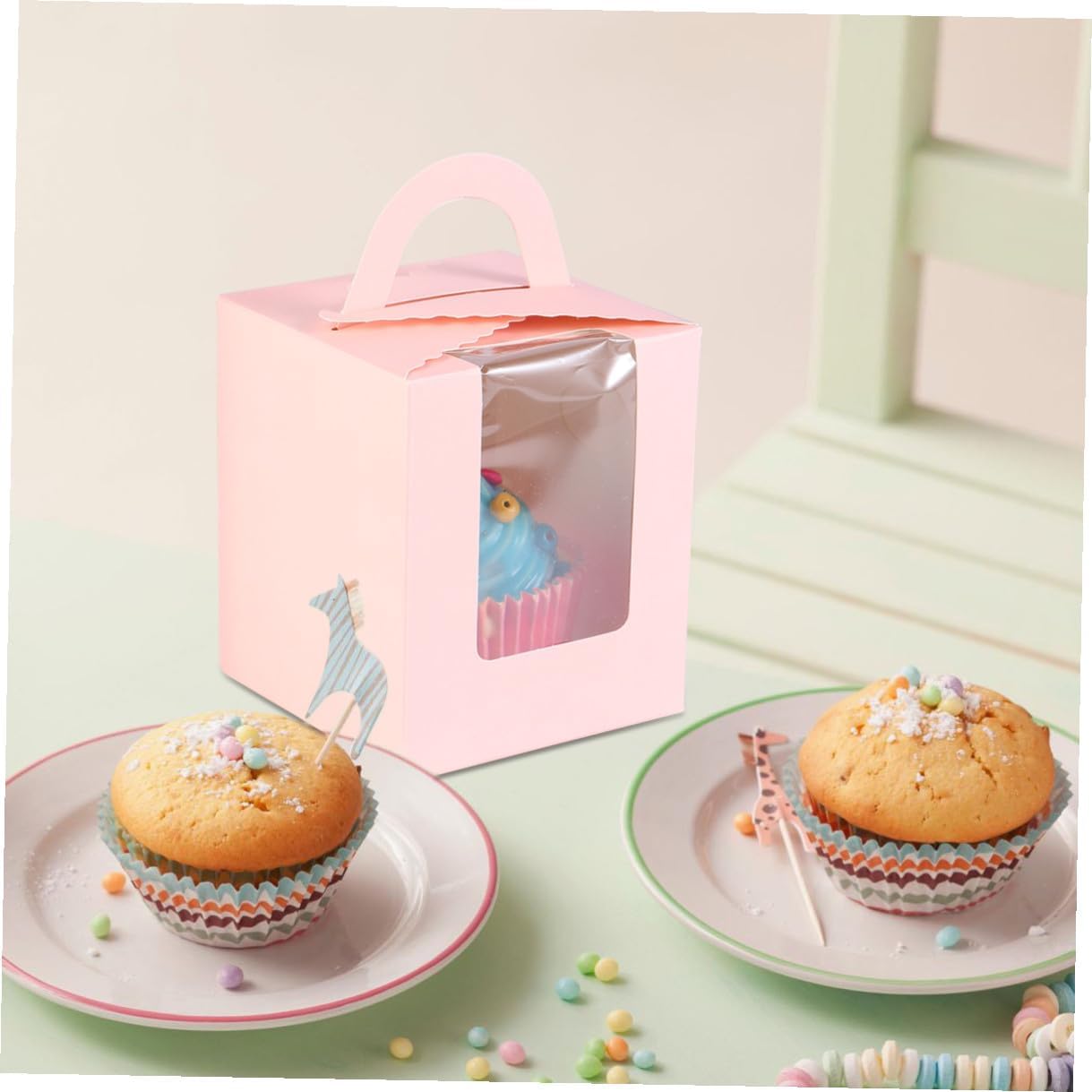 50pcs Pink Single Muffin Cupcake Container with Window and Handle Food-grade Paper Cake Box for Party and Wedding Dessert Packaging