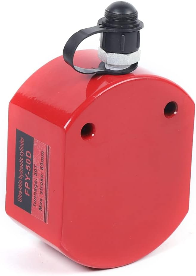 This is a hydraulic cylinder jack with a lifting capacity of 50T. This item is made of high-strength steel and has a strong lifting force that enables it to lift various cumbersome items quickly and firmly. The compact design is not only very portable but also allows it to work in narrow spaces. DetailsProtective Cover: The connector is designed with a cover, which can avoid inside the socket.ZG3/8" Joint: It utilizes ZG3/8” fittings with thread locking for a compact design that facilitates quick connection of fittings. Model: FPY-50DColor: RedMaterial: Steel Total Tonnage: 50T/110231 lbs Joint Size: ZG3/8"Stroke: 64mm/2.52inFuel Consumption: 0.113L/0.03GalInner Diameter: 9.5cm/3.74in 1* Hydraulic Cylinder Jack