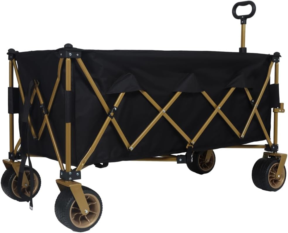 Enhanced 3X Mega Capacity: With a spacious interior measuring 44.5”L x 20”W x 17”H, this utility wagon provides ample room for all your essentials. The dual mesh cup holders ensure your beverages are always within reach and securely held.Innovative 1:6 Space-Saving Fold Ratio: Unlike other wagons, this model folds down to just 1/6th of its expanded size, making it incredibly easy to store in car trunks, garages, or any small space. The included waterproof carry-on bag adds an extra layer of convenience and portability.Patented Ultra-Stable 480lbs Frame: Built with 20% thicker steel pipes and reinforced joints, this wagon offers exceptional stability and durability. Capable of handling up to 480lbs, it is perfect for transporting heavy loads, including construction materials, outdoor equipment, and more.7” All-Terrain Wheels with Brakes: Navigate through various terrains with ease, thanks to the 7-inch puncture-proof wheels with anti-slip treads. The built-in brakes provide additional control, especially on slopes, ensuring your cargo remains secure and stable.One-Second One-Hand Folding – No Assembly Required: Setting up and folding down this wagon is a breeze. With a simple one-handed operation, it can be quickly assembled or collapsed, making it an ideal choice for seniors, parents, and anyone who values convenience. This 51-inch Extended Heavy-Duty Foldable Utility Wagon is not just a tool; it's a reliable companion for all your outdoor and indoor activities. Whether you need a portable wagon for the beach, a snack cart for events, or a sturdy garden cart, this versatile wagon has got you covered.