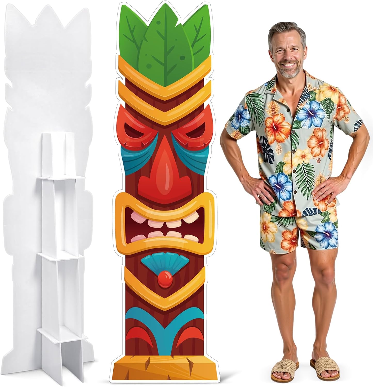 Features: Beach artwork with high recognizability. Built for photo ready visibility. The 6 ft surfboard shape uses a clean vertical layout from sky to sand to seawater, matching the tall panel for easy framing. Slanted palm trunks guide attention downward so faces stay centered in pictures. Decorative sand dots and ocean bubbles add texture, while the red starfish in the lower right creates a clear focal point that reads well from a distance. Quality KT plate keeps the panel light to carry yet rigid enough to stand neatly for displays. Insert the support stakes, then use the included adhesive dots to help secure the base or edges on smooth floors. Move it from entry to photo area to stage corner as your layout changes, then store it flat for the next luau, beach birthday, or summer promotion. Specifications: Quantity: 1 set Material: quality KT plate Color: multicolor Size: (about) 6 ft tall Package includes: 1 x Large surfboard cardboard cutout 2 x Support stakes 1 Roll of self-adhesive dots Notes: Manual measurement, please allow slight errors on size Due to the screen display, the color of the item may differ slightly