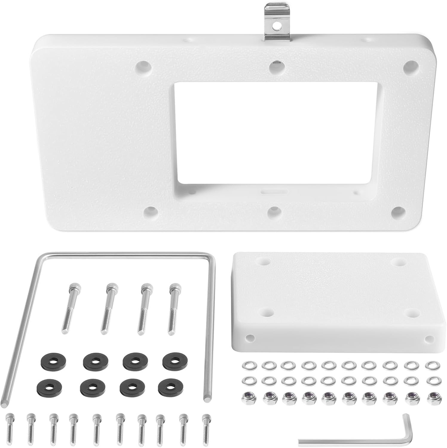 【Compatibility】: This quick-release mounting bracket is specifically designed for MotorGuide Xi series trolling motors, perfectly compatible with MotorGuide Xi3 and Xi5 models. Replacement part number: 8M0092063. 【User-friendly Design】: The low-profile design with an active locking mechanism allows you to quickly connect and disconnect your trolling motor by simply plugging and securing the locking pin, making cleaning and maintenance very easy. 【Theft protection】: Offers a security option for using an anti-theft padlock, allowing you to lock the motor when leaving it on the kayak for extended periods to ensure its safety 【Premium materials】: The white top and base plates are made of tough nylon composite, ensuring durability. High-quality stainless steel hardware , offering rust and corrosion resistance. 【Easy Installation】: Mount the base plate on the boat’s transom, drilling may be required, so determine the mounting hole positions in advance. Please ensure the base plate has a flat and secure contact with the deck. Use bolts to attach the top plate to the bottom of the trolling motor and install the locking clamps. You can choose to install the clamps in either of two directions. Fit the top plate into the base plate, secure with the locking pin, and the installation is complete.