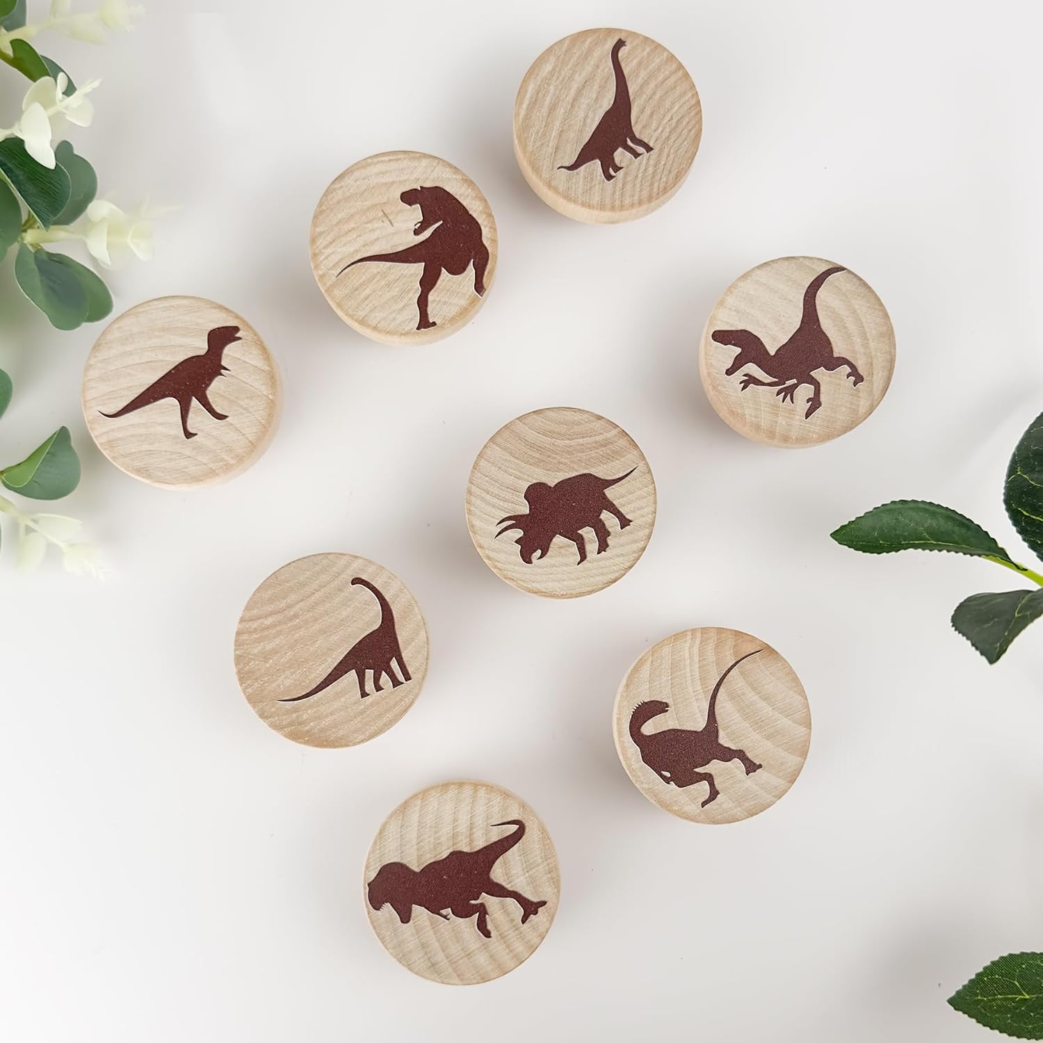 8PCS Wooden Dinosaur Animal Nursery Dresser Knobs Baby Unique Wood Knob Kids Room Bedroom Decorative Drawer Pulls Fun Cabinet Cute Closet Door Furniture Handles and Knobs Woodland Theme