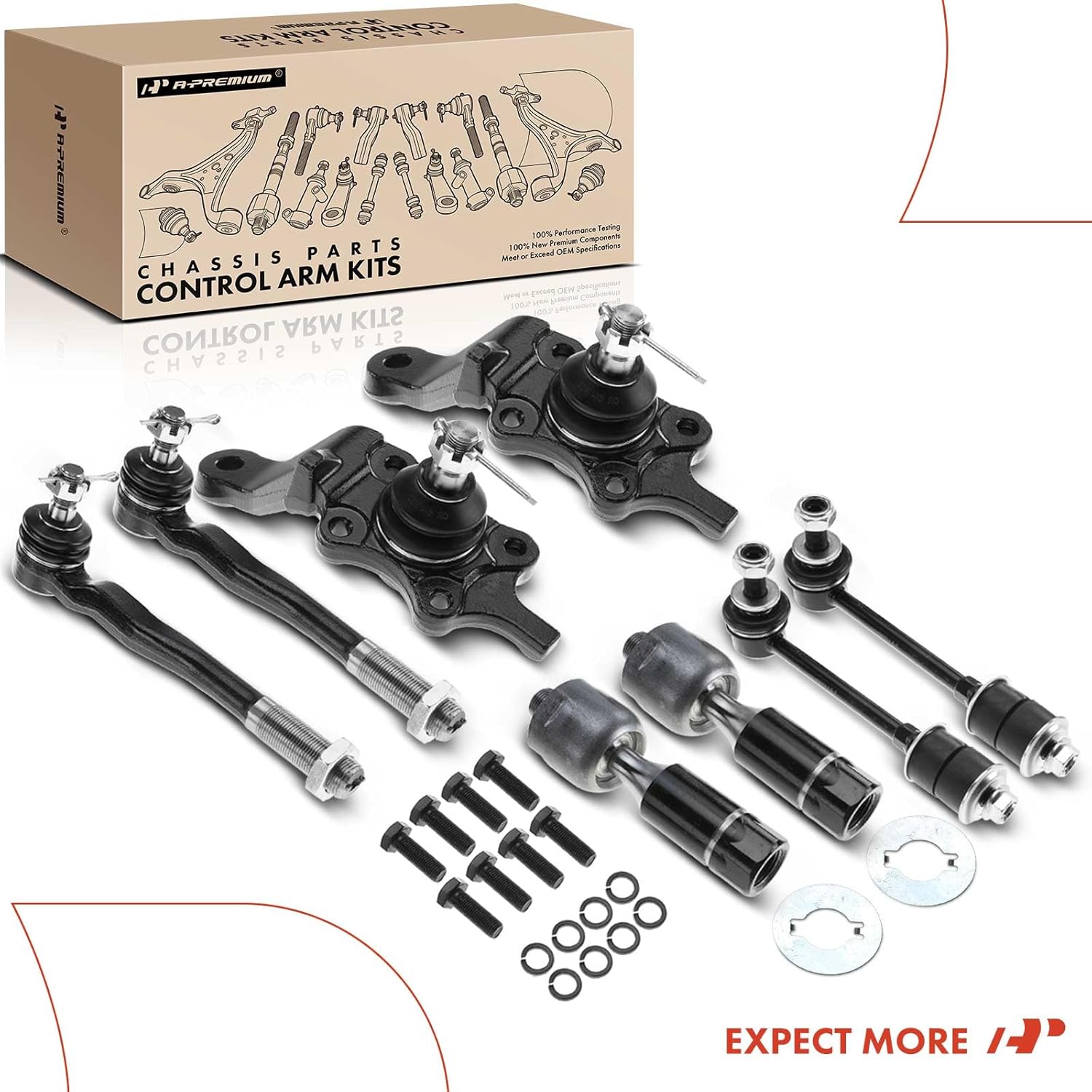 • [Package Detail]: 2 x Front Sway Bar Link, 2 x Front Lower Ball Joint, 2 x Front Inner Tie Rod End, 2 x Front Outer Tie Rod End