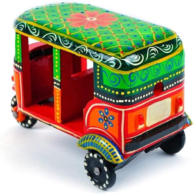 Aashita Creations Wooden Carved embssed Painted tuk tuk/Wooden Painted Indian auto Taxi/Diwali Gifts Wedding Gifts