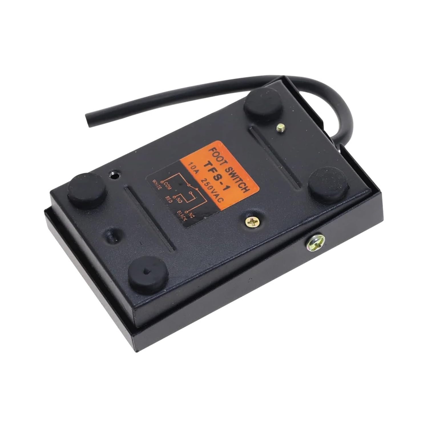 Foot SwitchesProduct Name Foot Pedal SwitchModel FS-1Action Type MomentaryContact Type SPDT (NO NC)Rated Voltage / Current AC 220V 16APedal Size (Approx.) 10 x 6.5 x 3cm/3.9" x 2.6" x 1.2"(L*W*T)Cable Length 14.5cm / 5.7"Material MetalColor BlackPackage Content 1 x Foot Pedal SwitchMaterial : IronSwitch Type : Push Button SwitchWarranty : 100000Model Number : Foot switchFeatures : Foot SwitchItem Type : SWITCHES