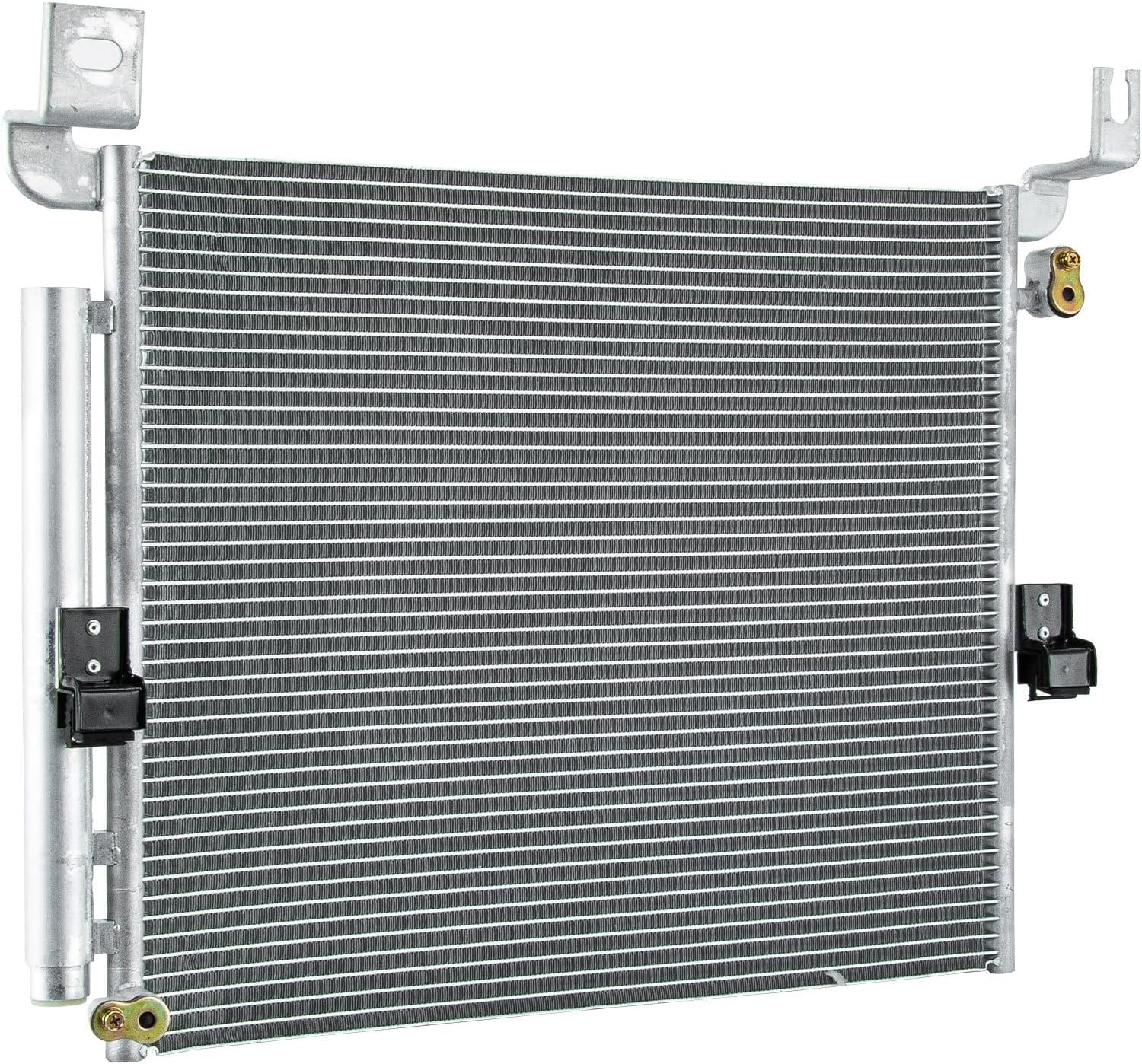 Compatible with : For 2005-2011 Toyo Tacoma (submodel: Base, Pre Runner, X-Runner) For 2012 Toyo Tacoma (submodel: Base, Pre Runner, X-Runner) Specifications: High Performance Racing Spec. Condition: Brand New Material : Aluminum Core Core Dimensions: 22.25 x 18.13 x 0.69 in Interchange Part Number: 73393, 10449, 8846004210, TO3030205 Superseded Part Number: 73393, 10449, 8846004210, TO3030205 All our products are 100% fully tested to ensure top quality. No Fitting Instructions Supplied! Professional Installation is Highly Recommended! PLS double check OEM radiator core/overall size & inlet/outlet location before ordering. The air-conditioning condenser is located between the car's grille and the engine-cooling radiator in which the gaseous refrigerant sheds heat and returns to a liquid state. The liquid refrigerant flows to the evaporator inside the dashboard, where it cools the cabin. The condenser works as a car radiator by dissipating out heat but also cooling the high-pressure refrigerant gas, so it forms into a high-pressure liquid, then gets streamed to the receiver-dryer until it continues to the expansion valve. If you feel not cool enough, it might result from a clogged air-conditioning condenser or disabled cooling fan. A leak in the condenser will also result in a loss of refrigerant. How to Replace A/C Condenser: Step 1: Discharging and recovering the AC refrigerant. Step 2: Condenser removal and replacement. Step 3: Remove parts that are in the way of the condenser. Step 4: Take off the A/C lines that run to the condenser. Step 5: Take off the condenser. Step 6: Install a new condenser. Step 7: Install the A/C lines and replace the o-rings.