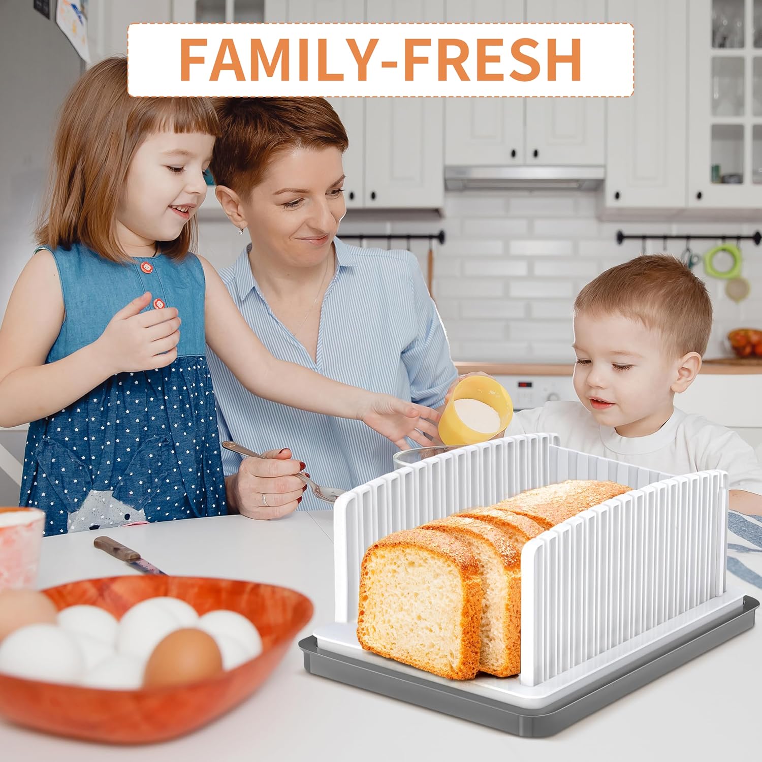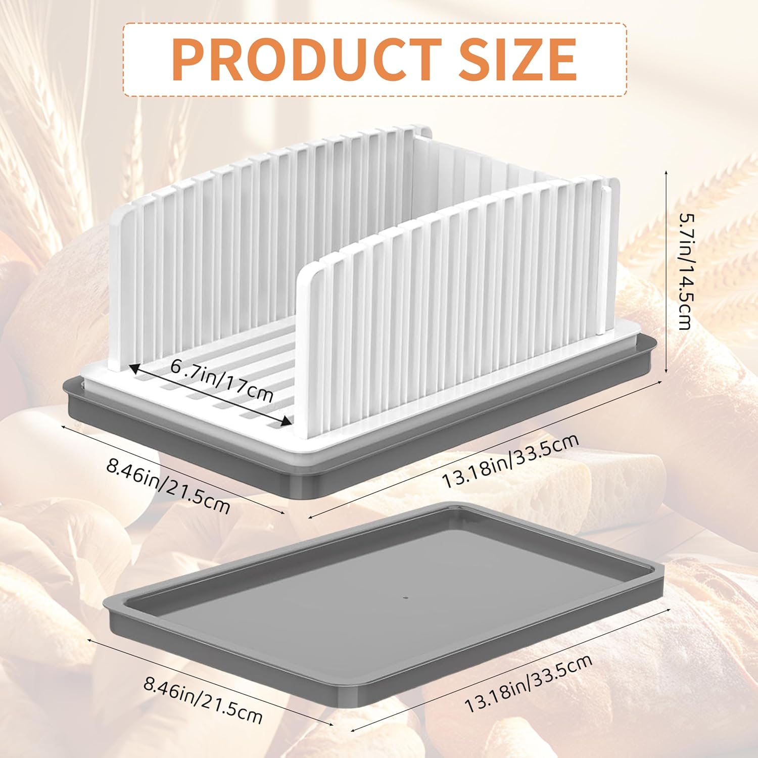 Product DescriptionADJUSTABLE BREAD SLICER WITH FOLDABLE DESIGN AND CRUMB TRAYUpgrade your kitchen slicing routine with this adjustable bread slicer, designed for clean and consistent results every time. The built-in thickness guide allows you to create uniform slices, whether you prefer thick toast or thin sandwich bread, making it an essential tool for homemade bread enthusiasts.Crafted with a smart foldable structure, this compact bread slicing guide is easy to store in drawers or cabinets. It's the perfect space-saving solution for small kitchens, RVs, or anyone looking to minimize countertop clutter.The integrated crumb tray catches loose crumbs as you slice, helping to keep your workspace clean and tidy. Simply remove and empty the tray, and you’re ready for the next loaf—no mess, no hassle.Built for safety and stability, the slicer features a durable, food-grade body with a non-slip base to ensure it stays securely in place while cutting. Enjoy steady slicing with confidence, without the need for extra tools.More than just a bread cutter, this versatile tool is ideal for slicing pound cakes, loaf cakes, and bagels. Its sleek white design adds a modern touch to any kitchen while delivering everyday functionality.Bring precision and convenience to your kitchen—experience hassle-free slicing with this compact, foldable bread slicer designed for daily use.