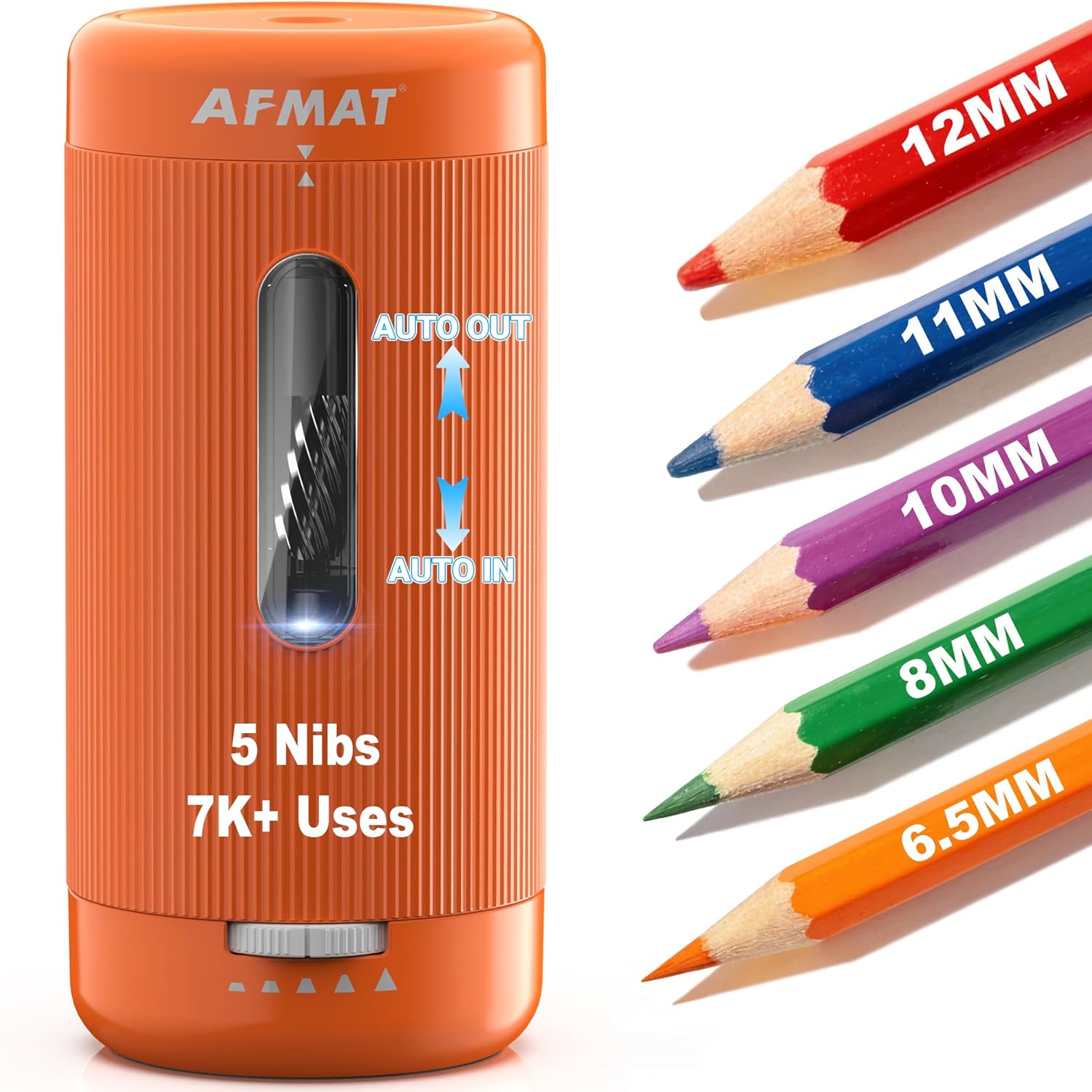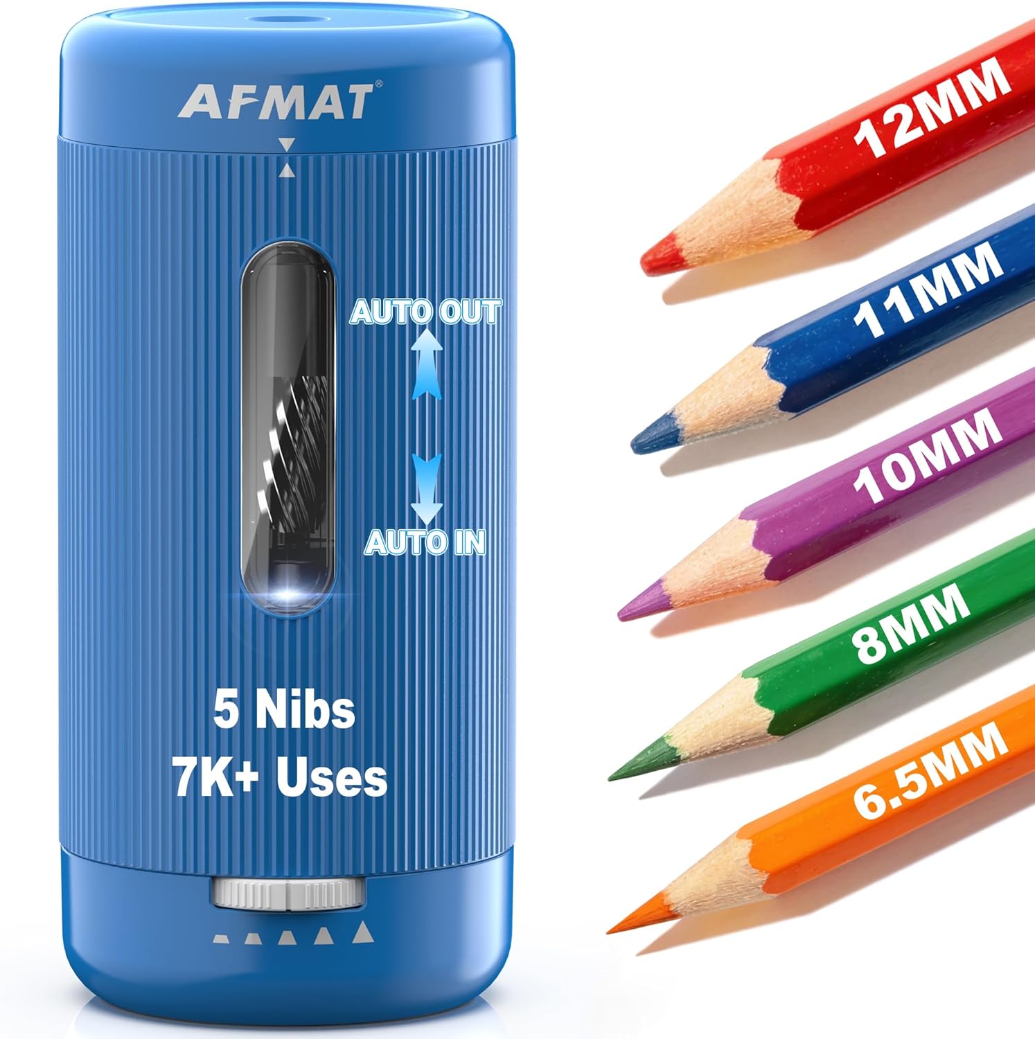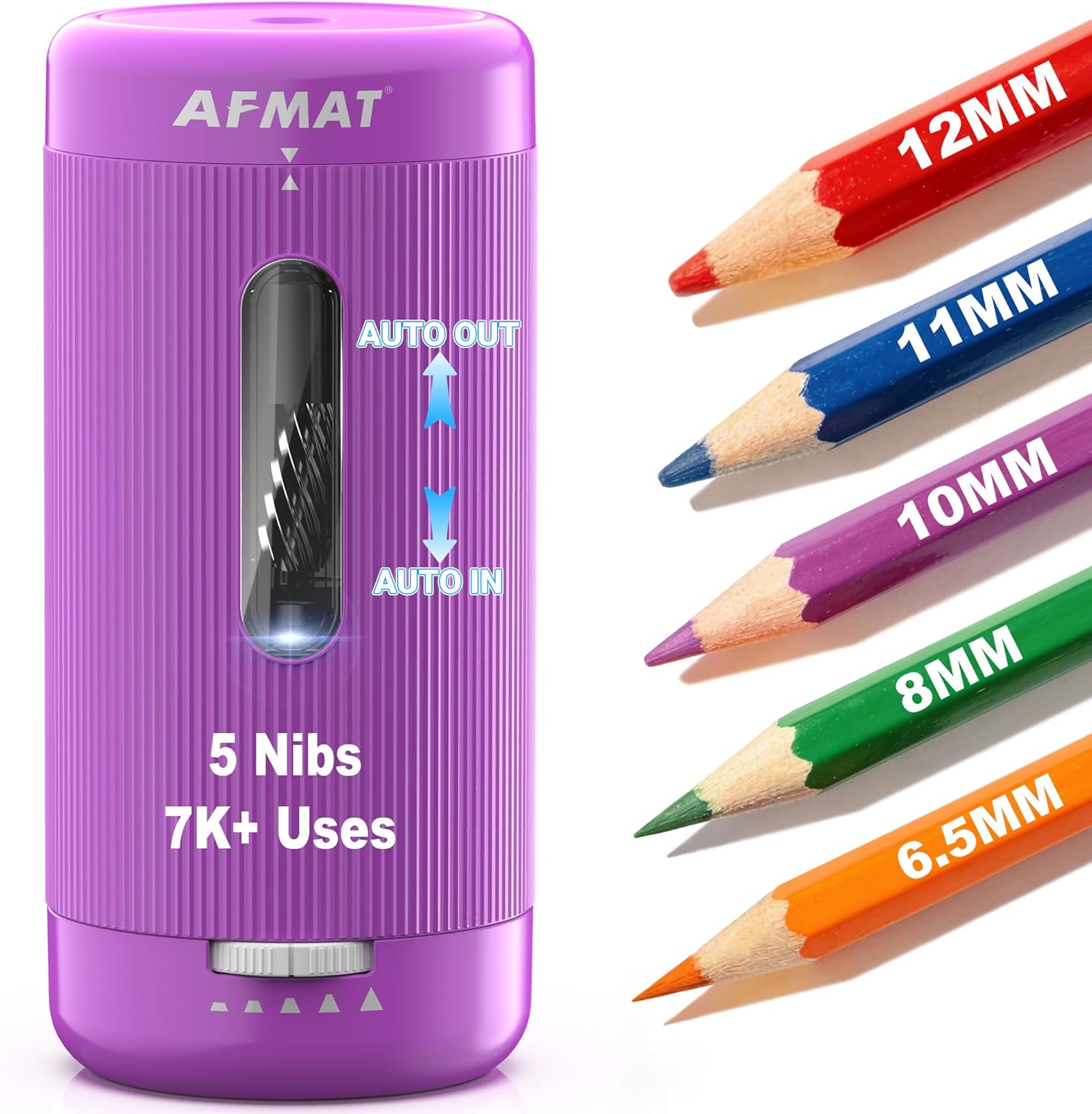 AFMAT Electric Pencil Sharpener, 5 Nibs, Auto in & Out, Fully Automatic Pencil Sharpener for Classroom, Rechargeable Hands-Free Sharpeners for No.2/Jumbo/Colored Pencils (φ6.5-12mm) PSC3(Green)