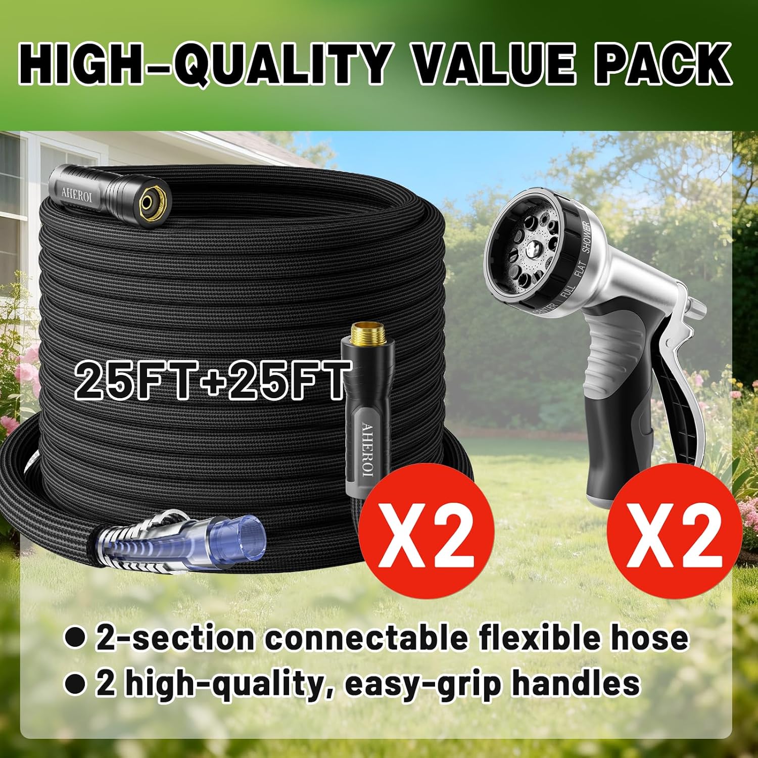 Aheroi Garden Hose 50FT, Flexible Garden Hoses Duo Mode Patented Kink-Free Water Hose with 10 Spray Nozzle, Lightweight Non-Expanding Waterhose for Outside Garden,High-Pressure&Wear-Resistant