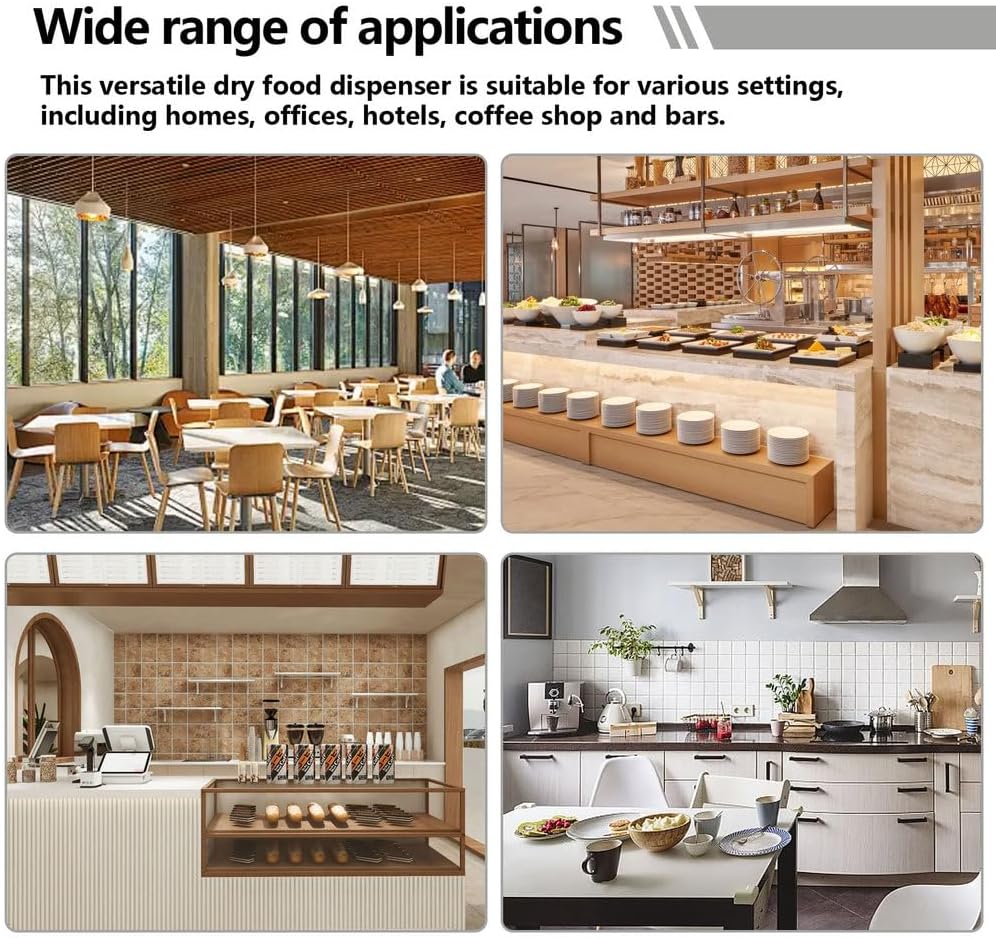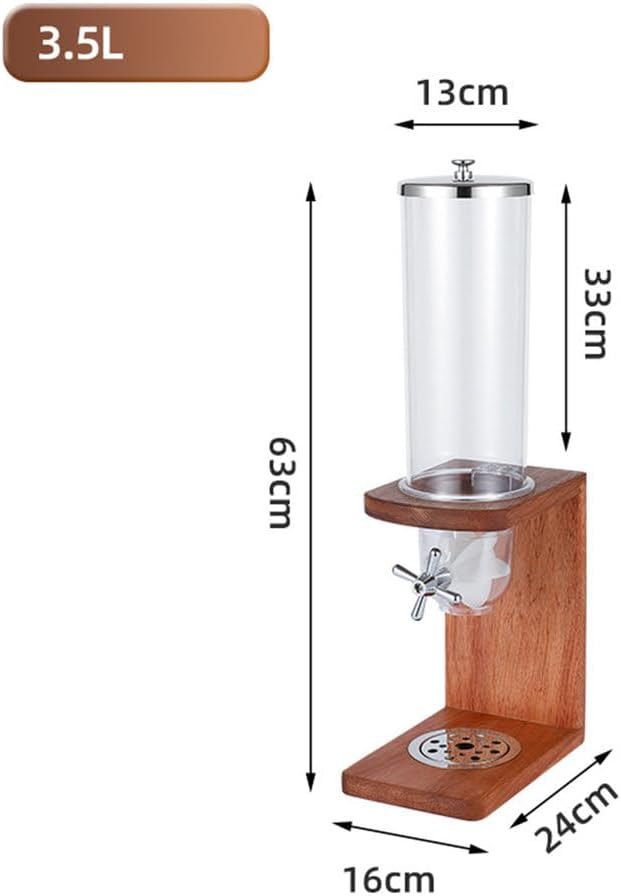 This cereal dispenser is made of solid wood and ABS, which is sturdy and durable. This dry food dispenser is designed for kitchen organization, making the countertop tidier. 3 capacities can be selected to store more cereals, suitable for storing cereals, beans, coffee beans, dried fruits, nuts, etc. This candy dispenser suitable for daily use at home or office.Specifications:Name: Cereal DispenserMaterial: Solid Wood/PCCapacity: 3.5L, 7L, 10.5LPacking List:1 Beverage DispenserNotes:Please note that the color of the product may vary due to lighting effects and shooting angles.Due to manual measurement, there may be errors in product size.