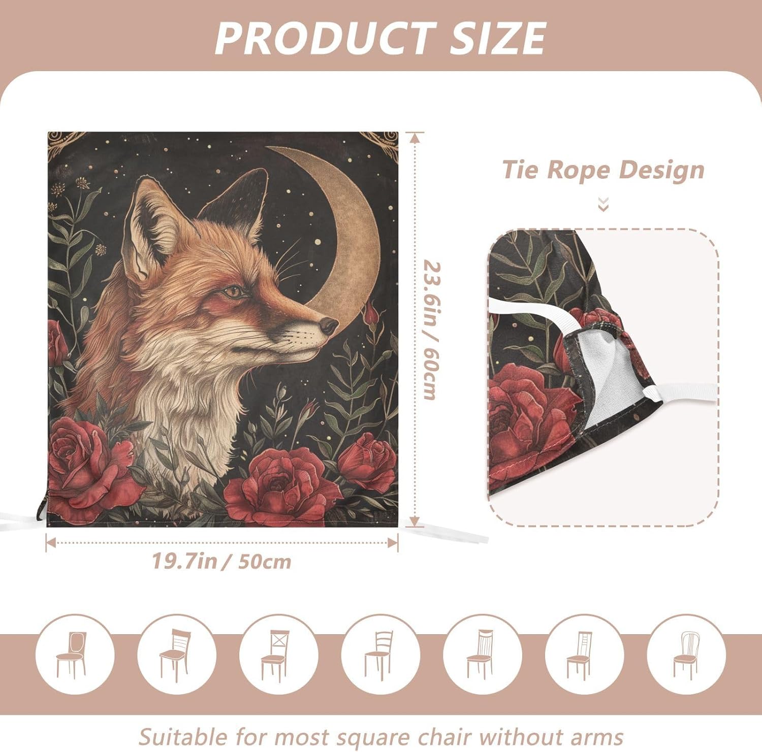 Chair Cover Material made of polyester,comfortable and soft to touch,reusable and suitable for long term use Features easy to install and remove, tie rope design at the bottom,machine washable Stylish Chair Decoration With beautiful pattern,it can be used for family party/ birthday party/wedding/ holiday party to add atmosphere, also can be used for chair decoration in living room, dorm, kitchen dining room,bedroom to bring protection to the chair while avoiding stains to dirty the chair back. Easy To Care Machine washable, Not washing with hot water, Not bleaching
