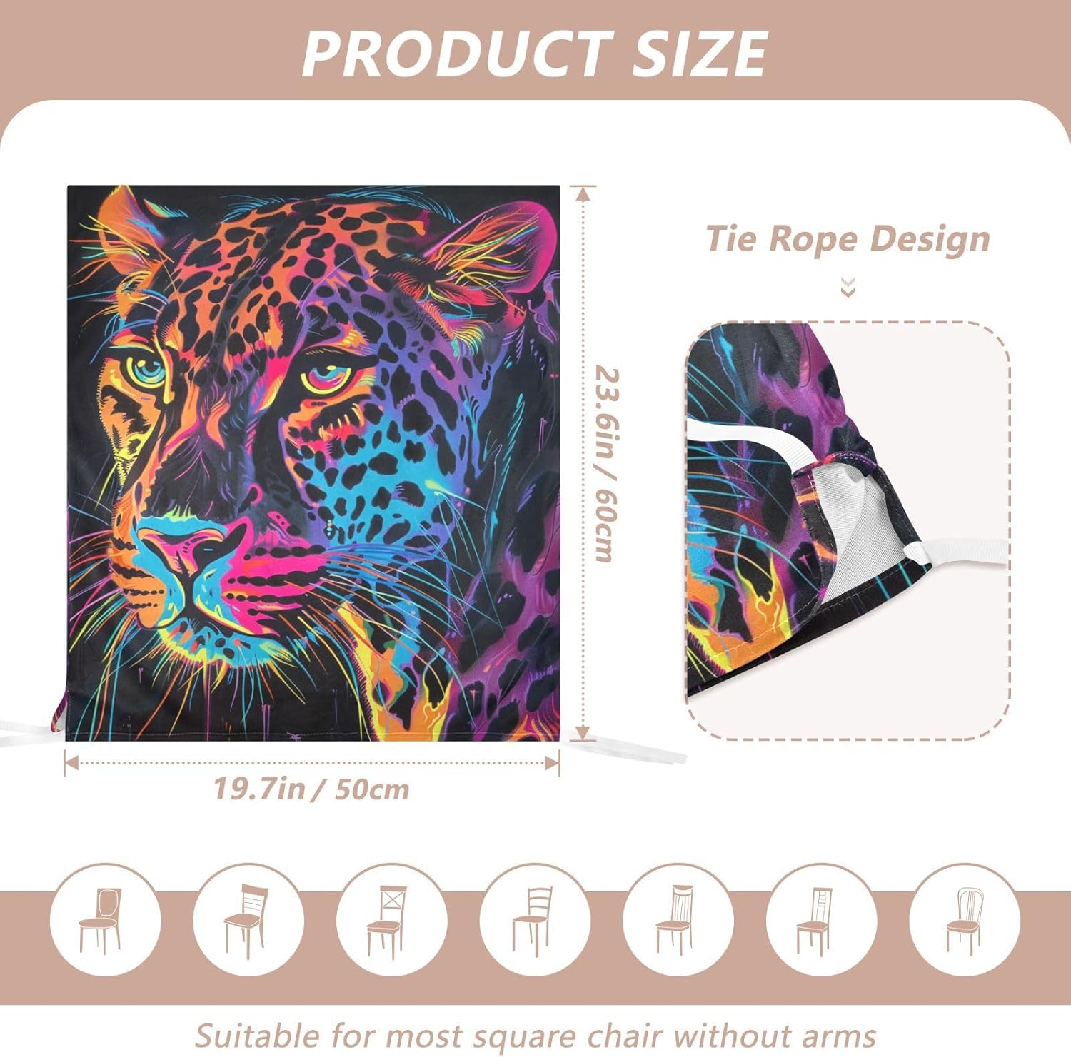 Chair Cover Material made of polyester,comfortable and soft to touch,reusable and suitable for long term use Features easy to install and remove, tie rope design at the bottom,machine washable Stylish Chair Decoration With beautiful pattern,it can be used for family party/ birthday party/wedding/ holiday party to add atmosphere, also can be used for chair decoration in living room, dorm, kitchen dining room,bedroom to bring protection to the chair while avoiding stains to dirty the chair back. Easy To Care Machine washable, Not washing with hot water, Not bleaching
