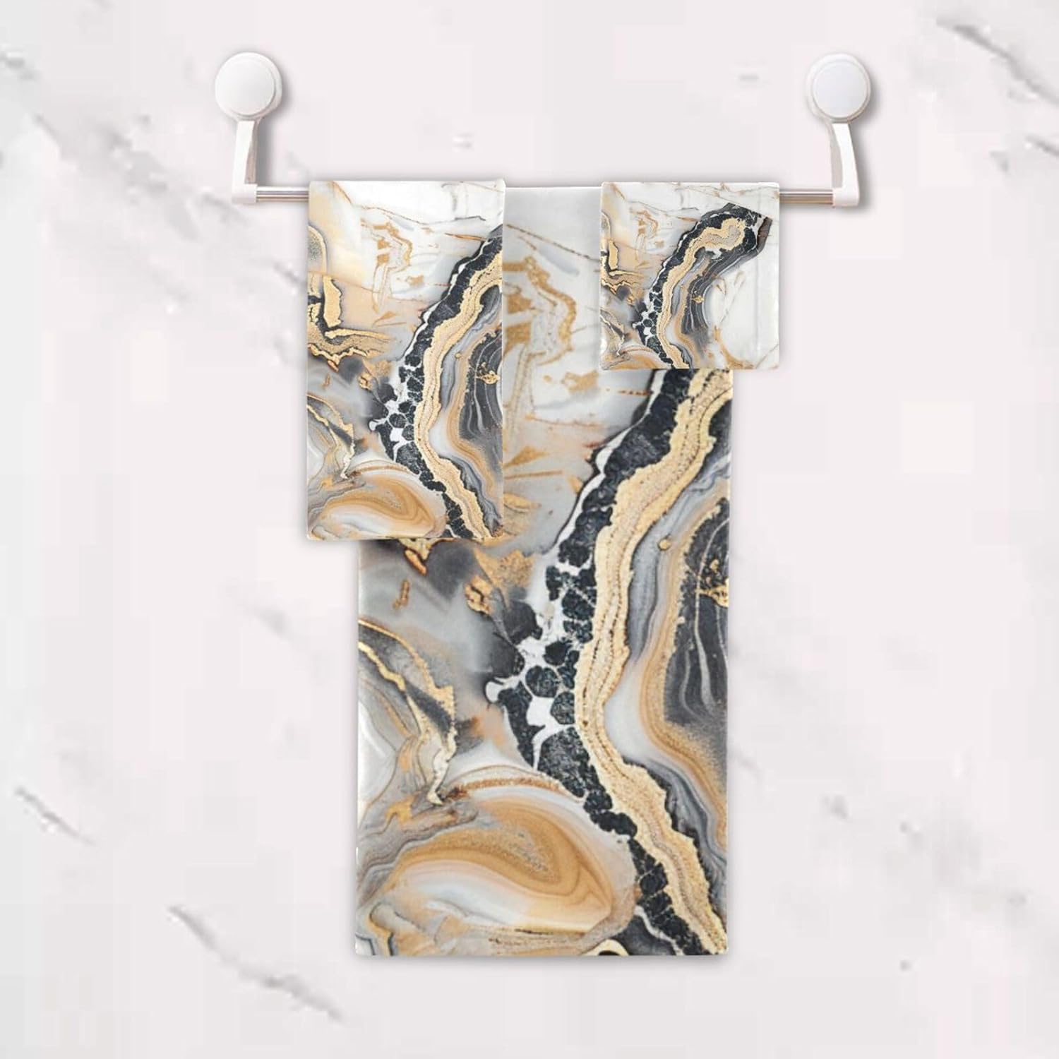 Size Towel Set Includes: 3-Piece towel set includes 1 bath towel,1 hand towel and 1 washcloth. Dimension: Bath Towel Size: 60 x 30 inch Hand Towel Size: 28x16 inch Washcloth Size: 13x13 inch Towel Material Printed surface is made of polyester and the back is made of cotton. Features Absorbent Lightweight Soft and Comfortable Single-Side Print Design Stylish and Delicate Pattern Multiuse Suitable for home,bathroom,gym,swimming pool, beach,etc. It's also could be a present for your friends or family. Care Instructions No bleaching Not suitable for washing in hot water above 40℃