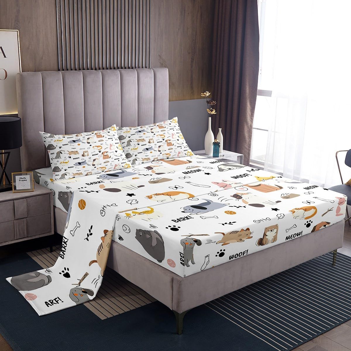 Package Include:1 fitted sheet,1 flat sheet, 1 Pillowcase or 2 Pillowcases;Our high quality designs match any decor; High-end Fitted Sheet Set Pattern Bedding Set, simply decorating your rooms any time you want, bringing you fresh feel for year round use; Durable: Made from 100% polyester microfiber, the sheet set offers long-lasting strength, anatural resistance to shrinking and a noticeably soft hand feel; Size Information: Twin size :3pcs Fitted Sheet set, 1 Fitted Sheet 39"W x 75"L x 16"H,99 x 190 x 40 cm , 1 Flat Sheet 66"W x 96"L,170x245 cm , 1 pillowcase 20" x 30",51x75 cm ; Full size :4pcs Fitted Sheet set, 1 Fitted Sheet 54"W x 75"L x 16"H,137 x 191x 40 cm , 1 Flat Sheet 81"W x 96"L,205x245 cm , 2 pillowcase 20" x 30",51 x 75 cm ; Queen size :4pcs Fitted Sheet set, 1 Fitted Sheet 60"W x 80"L x 16"H,152 x 203x 40 cm , 1 Flat Sheet 90"W x 102"L,230x260 cm , 2 pillowcase 20" x 30",51 x 75 cm ; King size ,4pcs Fitted Sheet set :1 Fitted Sheet 78"W x 80"L x 16"H,198 x 203x 40 cm , 1 Flat Sheet 90"W x 106"L,229x270 cm , 2 pillowcase 20" x 36",50 x 90 cm ;Personalize your bedroom:Beautiful design and colorful print, makes your bedroom unique and brings you a wonderful dream;Washing instructionsMachine wash separately in cold water,hang dry, do not bleach; Occasion:The soft Fitted Sheet bedding sets designed for Children ,Adult, Men, Women, Teens; This Fitted Sheet set is also suitable for full seasons, Spring, Summer, Autumn and Winter;After Service: We are dedicated to ensuring you have an excellent experience, from the moment you place your order until you sleep on your new bedding the first time;If you have any dissatisfaction with the product, we will provide a solution as soon as possible;