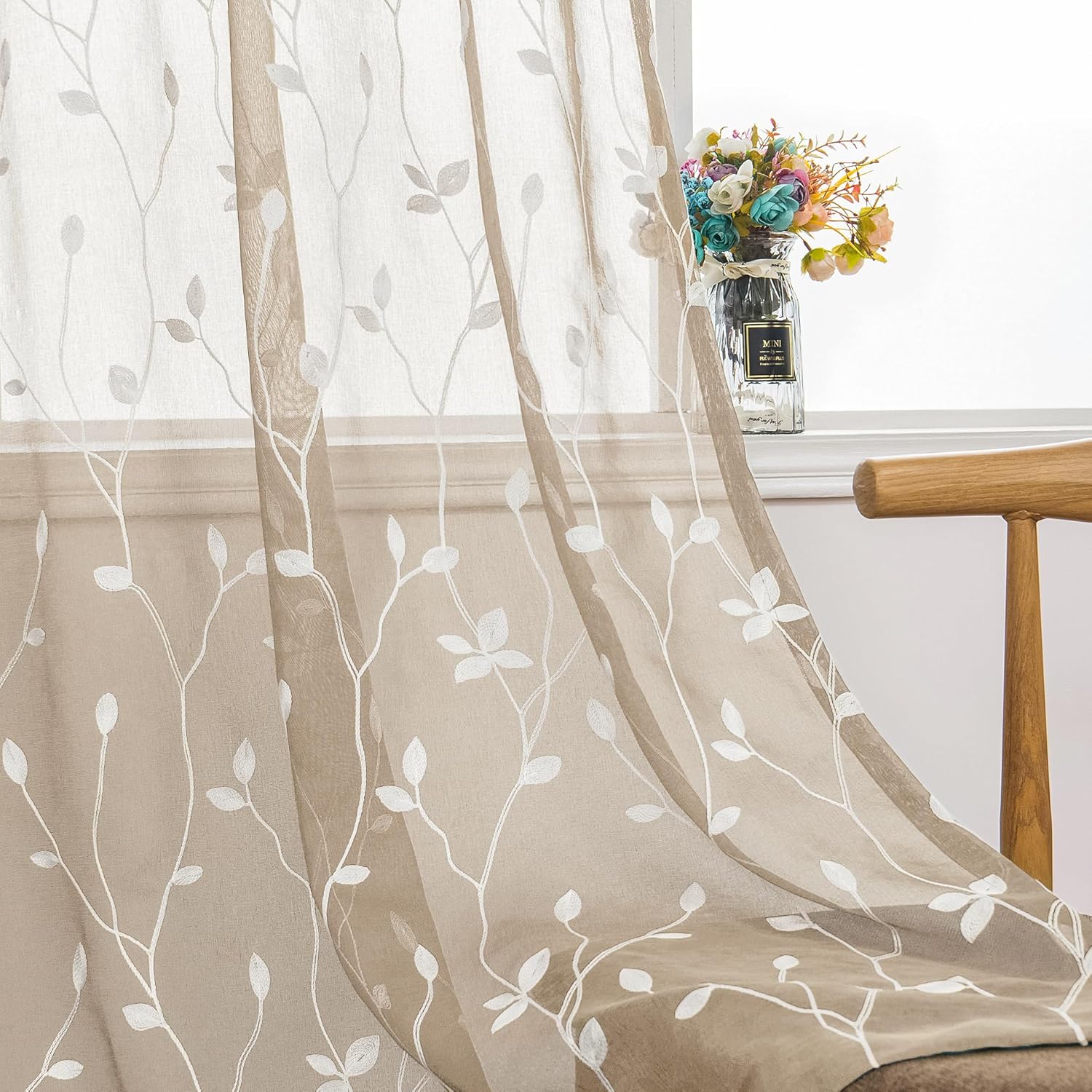 AmHoo Leaf Embroidered Sheer Curtains If you're looking for a curtain that adds elegance to your room, this is the curtain for you!1.Style:Leaf pattern , a contemporary look,an elegant addition to your home2.FuctionRich textured look semi-sheers enhance privacy, but still lets some natural light in.keep the room comfortably tranquilAdd a fresh accent and create a natural elegant look for your home3.Package: Include 2 Panels