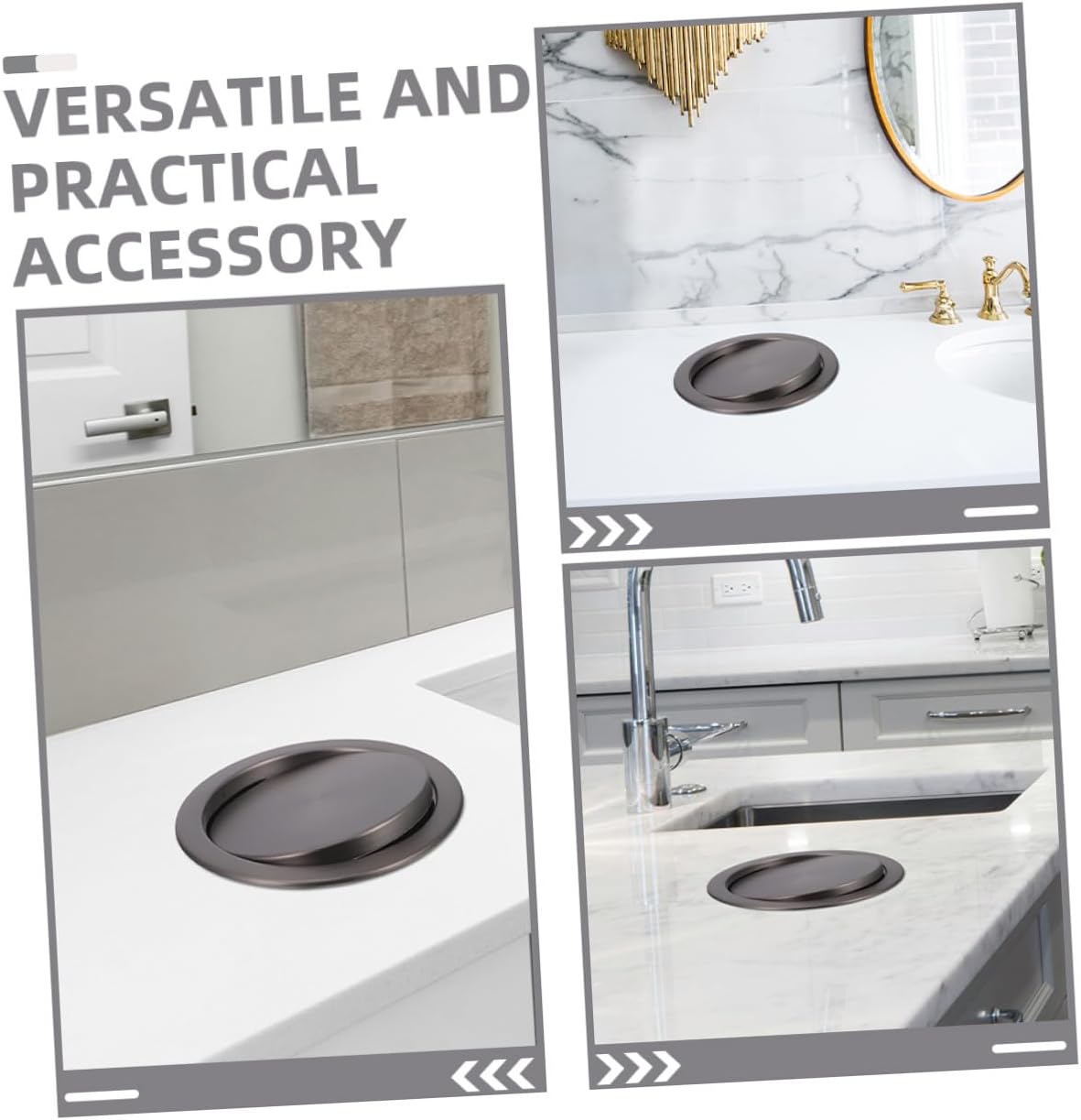 Package List 1 x embedded trash can lid Characteristics -Material:Stainless steel -Versatile in its application: this product is suitable for use in both kitchens and bathrooms, providing exceptional utility and convenience flush trash can lids -Minimalist design: Featuring a sleek and minimalist design, this product is meticulously designed to seamlessly integrate with various interior decor styles trash can cover -Flip lid design: The innovative flip lid design allows for swift and effortless waste disposal, helping to maintain a tidy and organized kitchen environment trash can covers -Size:23.80X23.80X5.00cm/9.35X9.35X1.97in -Color:Dark Grey -Designed for easy installation: this product can be embedded into surfaces, offering a space-saving solution that maximizes efficiency can covers - stainless steel: Crafted from stainless steel, this product makes durability, making it ideal for extended use trash grommet -Product Info:Stainless steel trash can lidGoods Informationcountertop trash lid The stainless steel construction provides excellent resistance to wear and tear, making it a and addition to your home or workplace.trash grommet Its recessed design allows it to blend seamlessly with countertops, creating a streamlined look that enhances the overall aesthetic of your kitchen or bathroom.flush trash can covers The auto flap mechanism of this trash bin lid makes that waste disposal is both quick and efficient, reducing the need for manual handling and minimizing mess