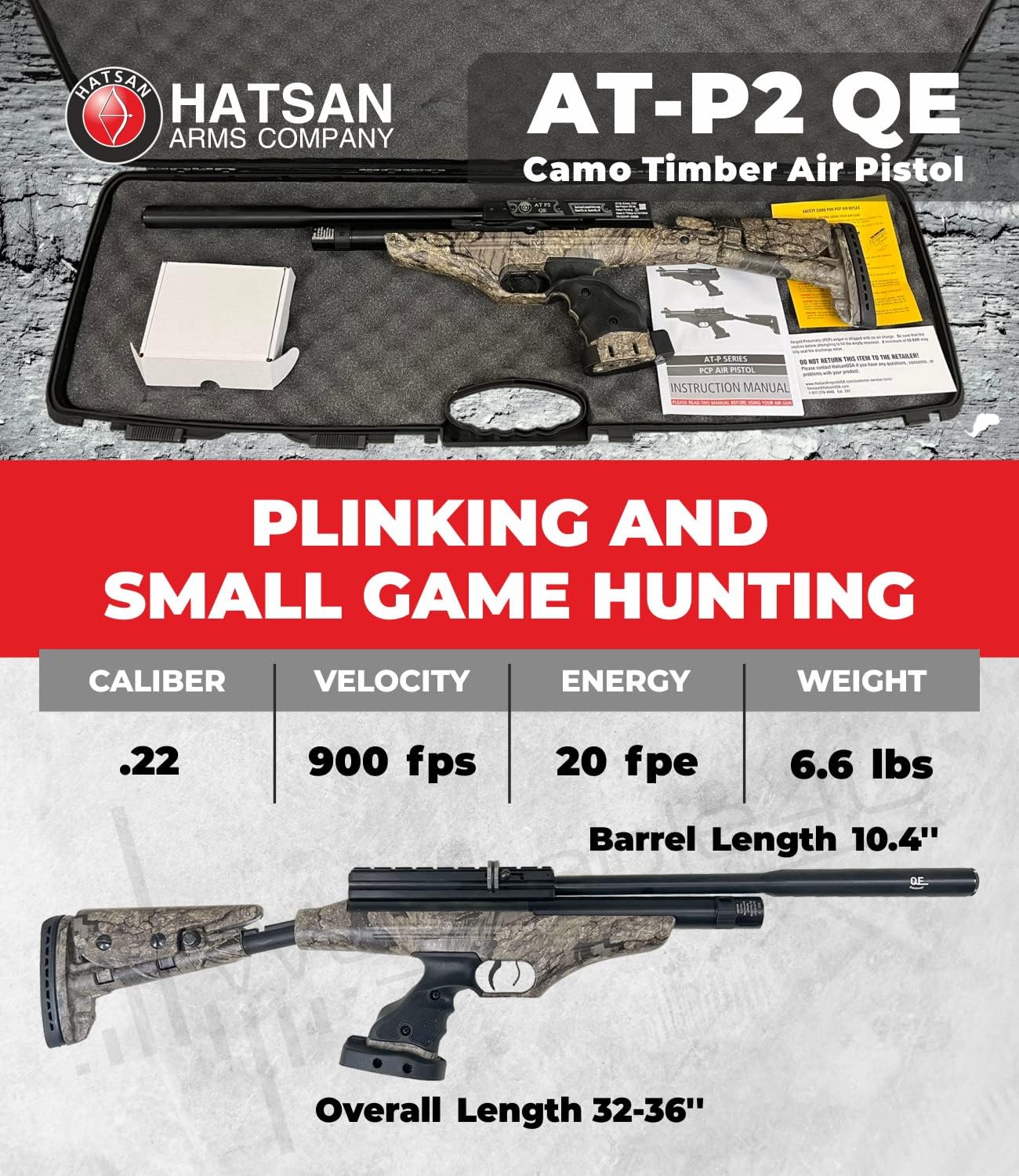 | Included Components | 1x .22cal PCP Air Pistol/PCP AirRifle ; 1x Pack of Pellets; 1x Pack of Targets, 1x Air cylinder discarging cap supplied, 2x 10-Shot Mag; 1x Quick-fill nozzle; 1x Repair Kit |