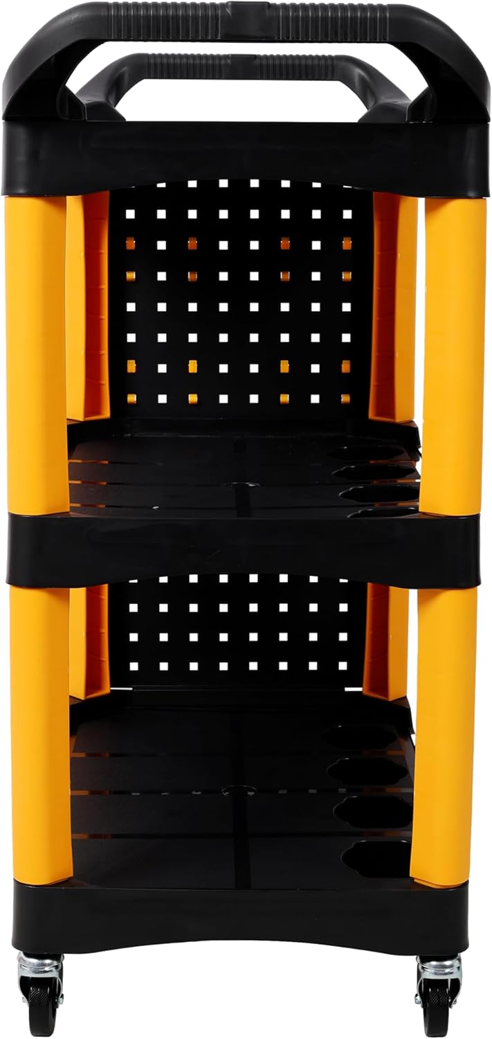 Auto Detailing Cart with Wheels, 3 Tier Car Detailing Cart with Hanging Boards & Hooks, Rolling Tool Organizer Car Wash Utility Cart for Garage, Workshop, DIY HomeSpecification:1. Material: Plastic2. Color: As product image shown3. Size: 32.6*17*38 InchFeature:Our specialized detailing cart is engineered to be the ultimate organizational companion for anyone working with tools¡ªwhether you¡¯re a professional detailer, a DIY enthusiast, or a tradesperson¡ªstreamlining how you sort, store, and access your gear. This cart is designed with the unique needs of tool users in mind, featuring a thoughtful layout of compartments, shelves, and holders that let you categorize every type of tool with precision.This mobile utility cart is built to deliver exceptional durability and heavy-duty performance, with its standout feature being the high-grade plastic shelves¡ªa material chosen specifically for its impressive strength-to-weight ratio and resilience. The cart boasts a remarkable load capacity of up to 300 lbs.Equipped with 1 long pegboard with hooks to easily hang tools; with ergonomic comfort handles on both sides for convenient, easy pushing of the cart; has 12 spray bottle holders; comes with two lockable universal wheels that can be easily opened or closed with just a single step on the wheel locks.Our car detailing cart transcends the boundaries of a single-use tool, emerging as a versatile, indispensable storage and organization workhorse that adds value across a diverse range of settings¡ªproving equally useful in private garages, bustling professional workshops, and high-volume auto repair facilities alike.Package Included:1PC Auto Detailing Cart with Wheels
