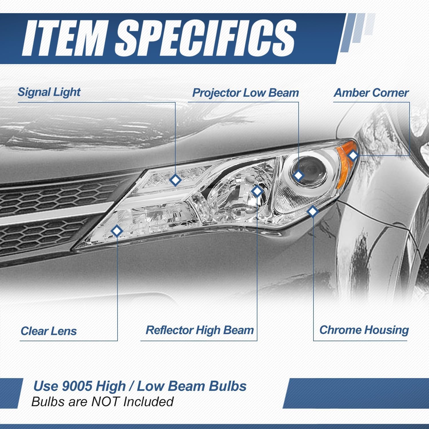 | Additional Features | Amber Corner, Chrome Housing, Projector Low Beam |
