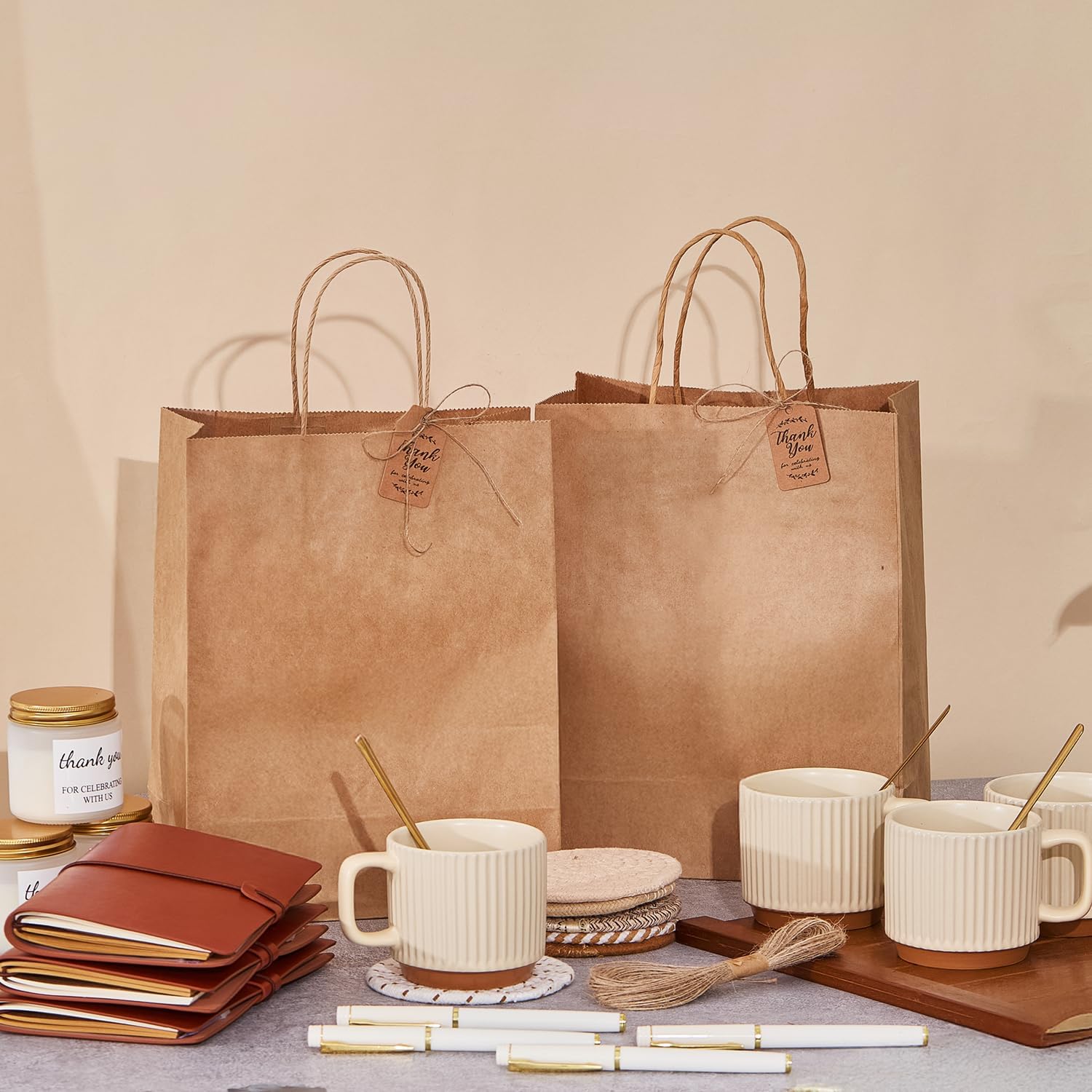 | Included Components | 1Pcs Ceramic Mugs and 1Pcs Metal Spoons and 1Pcs Woven Coasters, 1Pcs Charming "Thank You" Cards and 1 Roll of String, 1Pcs Pu Notebooks and 1Pcs Pens, 1Pcs Scented Candles, 1Pcs Stylish Kraft Paper Gift Bags |