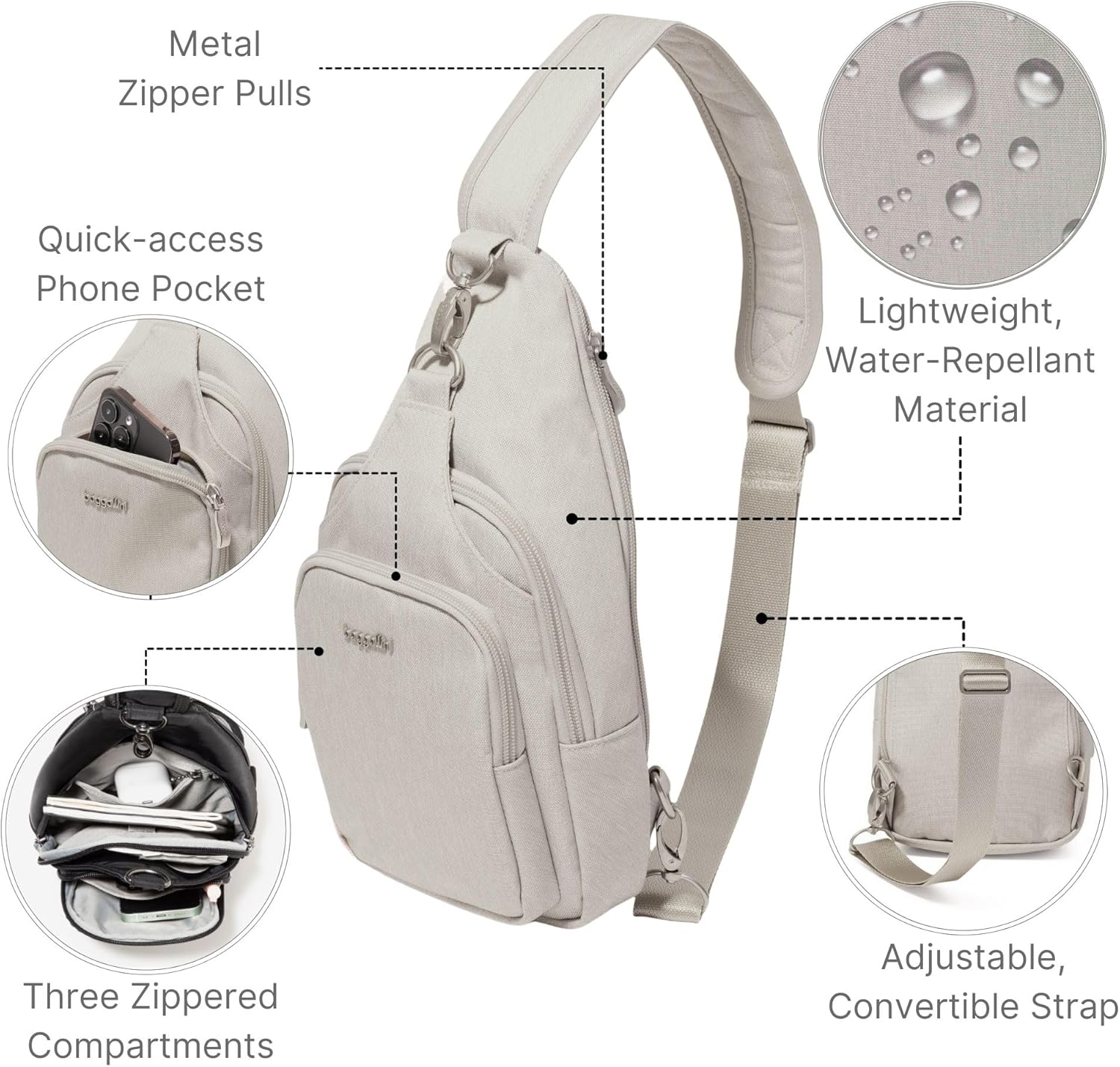 Breeze through your plans with the Central Park Sling, the perfect sling bag for busy days and lazy afternoons alike! Three zippered compartments and a secret slip pocket make staying organized easy with this fashion crossbody bag, while the convertible strap offers added versatility as you wear it your way. This sling backpack is the perfect travel bag, shoulder bag, hiking bag and so much more.