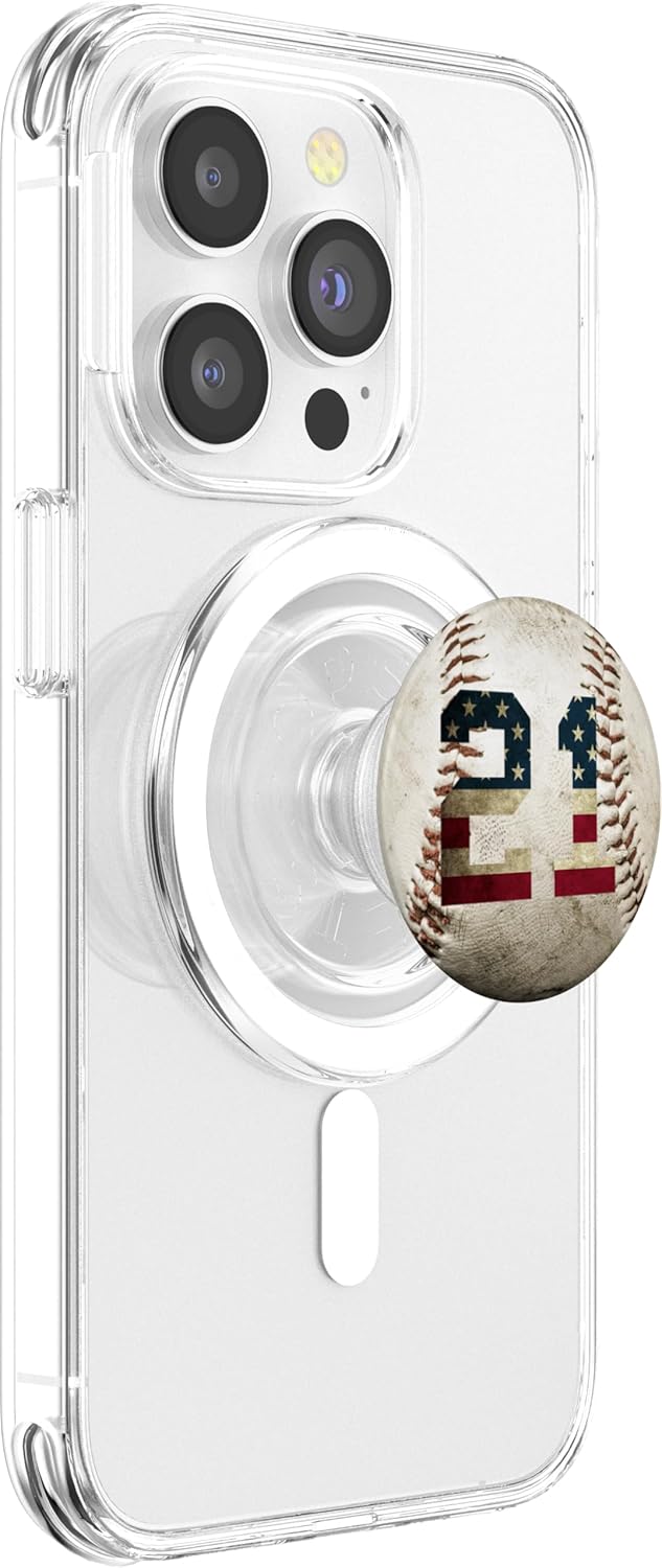 Baseball number 21 in american USA flag design phone grip for baseball fans and baseball players who love playing baseball or softball with the team and the coach on the baseball field. This phone stand makes an excellent gift for pitchers, catchers, first basemen, second basemen, third basemen, shortstops, right fields, left fields and center fields who love America. Also a great gift for independence day on the 4th of July.