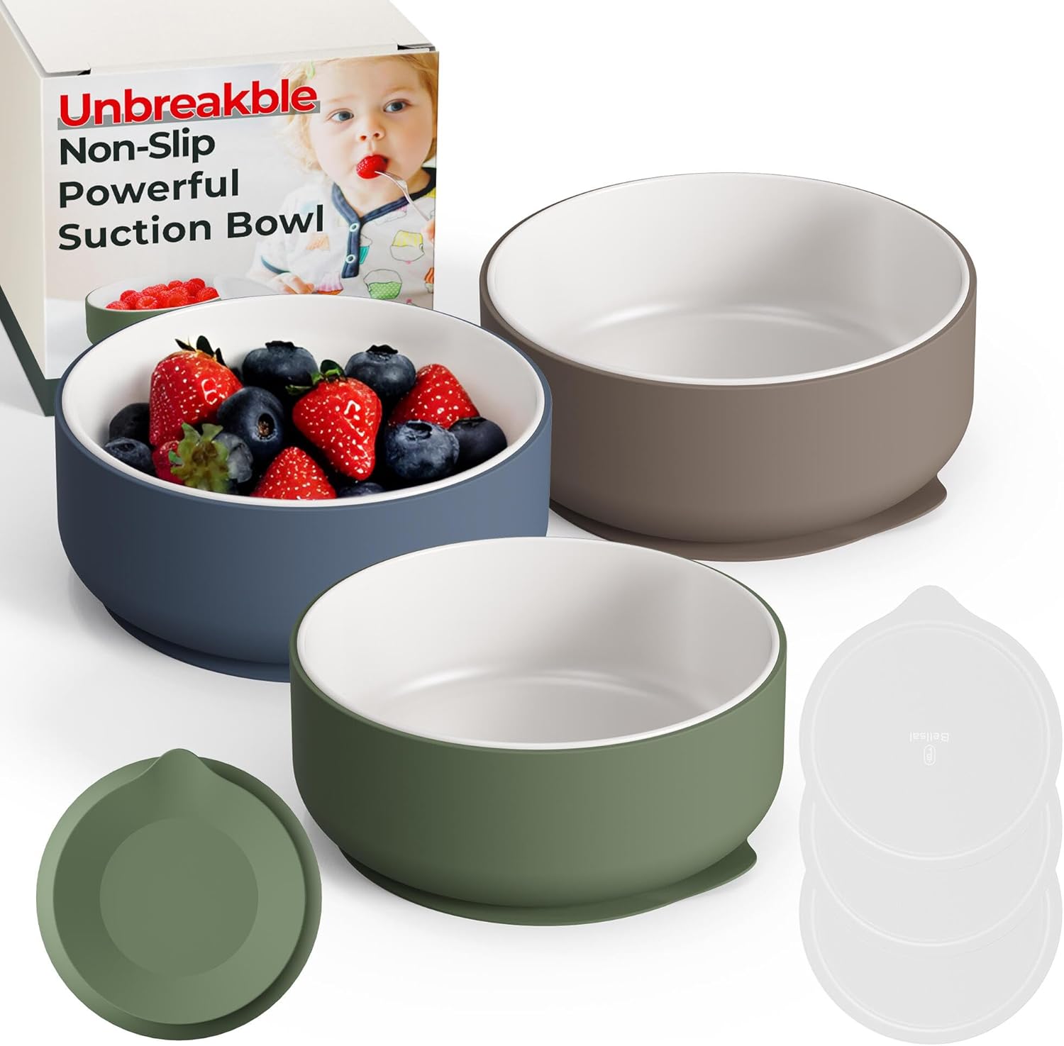 Bellsal Toddler Bowls Set of 3, Microwave & Dishwasher Safe, Kids Bowls Brightly Colored, Great for Salad, Cereal, Soup, Snack or Fruit 09